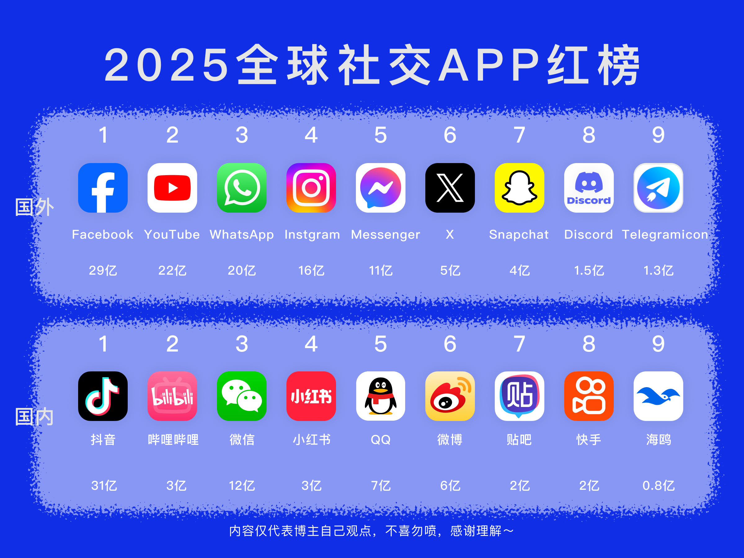 Facebook(29亿):这就是外国人的“中老年广场舞群”。每天发的最多的内容不是自拍,而是娃和宠物,跟你爸妈的朋友圈一模一样。