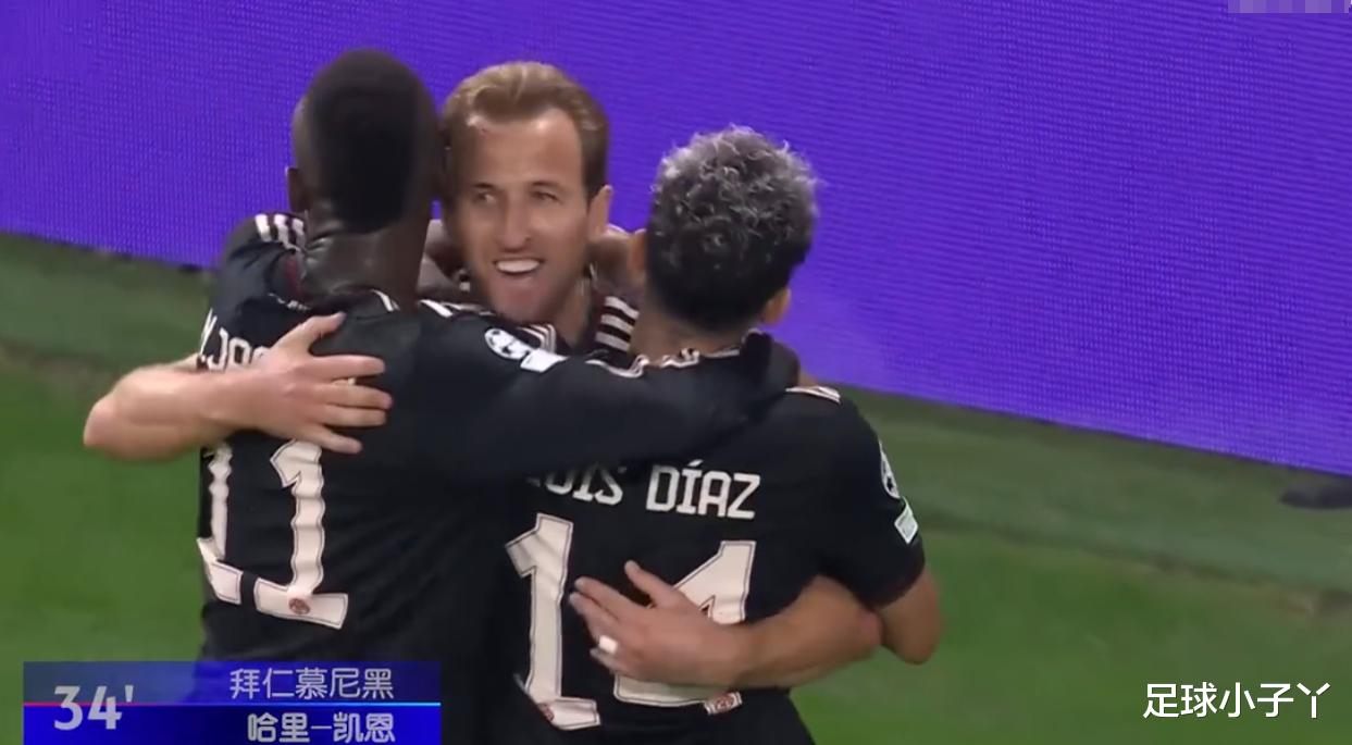 第34分钟,也就是2分钟后,凯恩在小禁区边缘,小角度低射进球,完成了双响,拜仁4-0。这也是凯恩在本次欧冠的第四粒进球,与皇马的姆巴佩一样多。