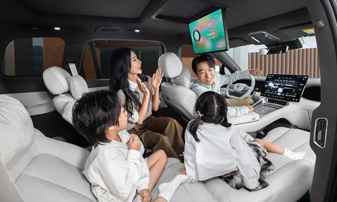 智能化配置是提升家庭出行幸福指数的关键一环。腾势N8L深谙此道,17.3英寸娱乐吸顶屏与20扬声器帝瓦雷音响系统,共同打造出沉浸式的移动影音空间,无麦K歌功能则能点燃旅途中的欢乐气氛。接入DeepSeek大模型的AI智能体,如同一位随车知识库,随时满足孩子们的好奇心。智能冷暖三开门冰箱、AR投影感应尾门等配置,于细微处体现人文关怀。其搭载的端到端“天神之眼B-辅助驾驶激光版”(DiPilot 300),基于行业领先的一段式端到端大模型,具备强大的算力与算法,实现覆盖城市、高速、泊车等多场景的智能辅助驾驶,犹如一位经验丰富的“老司机”相伴左右。更值得称道的是其“无界融合”的智能生态:与好孩子联袂打造的智能儿童座椅、与倍轻松合作开发的车载按摩系统、以及集成支付宝的“智能点单+车载支付”功能,将咖啡、奶茶等消费场景无缝接入车内,让便捷与舒适贯穿旅程始终,确保从宝宝、长辈到爱宠,每一位家庭成员都能获得专属的贴心照顾。