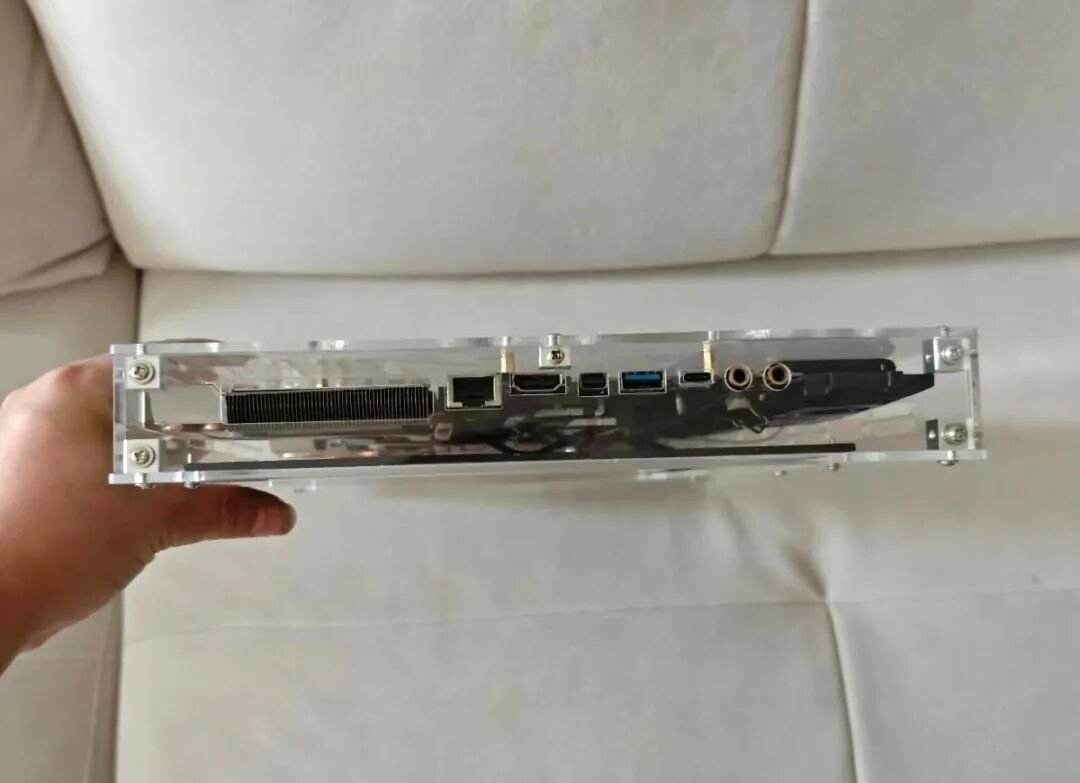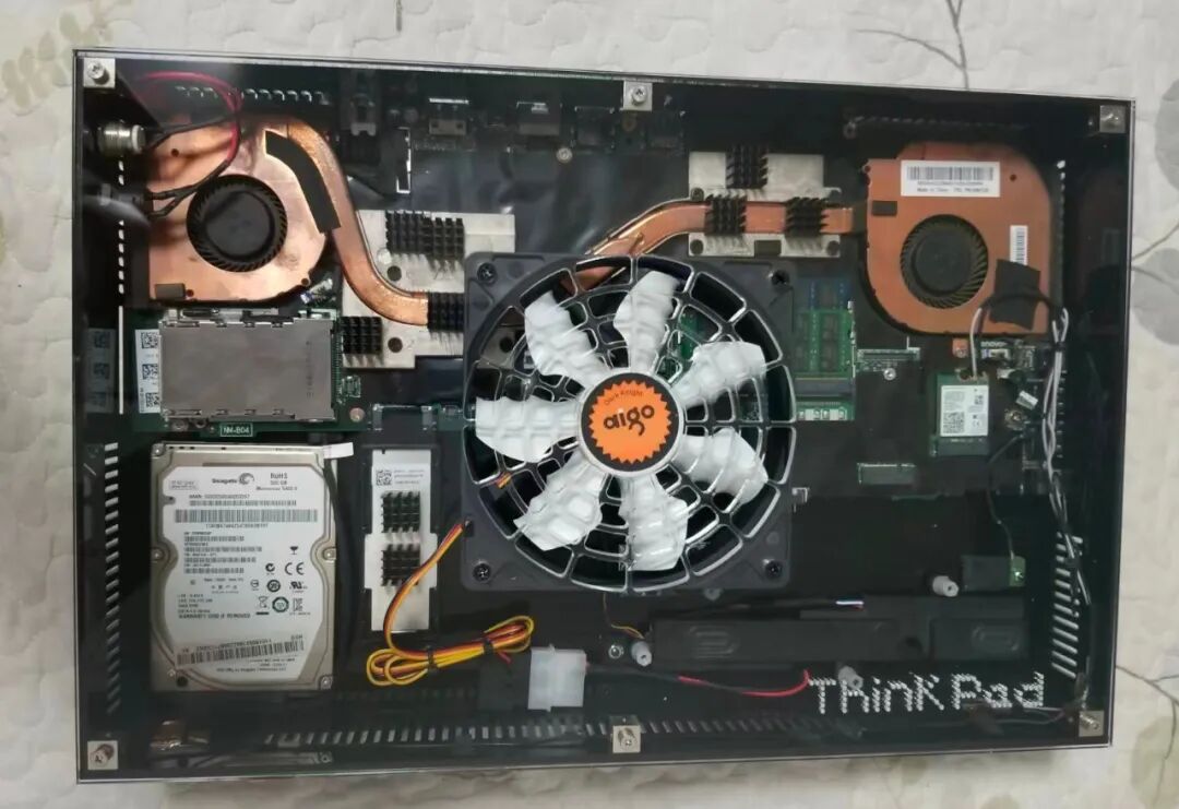 后来我又在闲鱼挖呀挖,发现有些大神提供笔记本改一体机的服务,并且不是简单的移植屏幕和主板到亚克力机箱中,还会加装大口径风扇加强散热,或者加装提手可以拎着走。