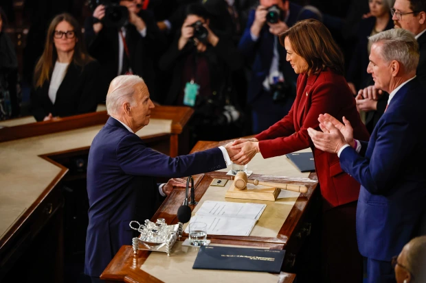 亲吻发生在乔·拜登总统发表国情咨文之前不久