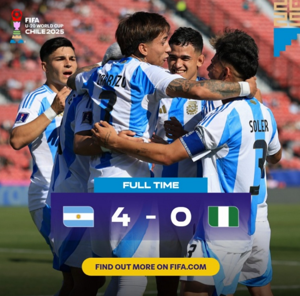 在另一场焦点战中,阿根廷队以4-0大胜尼日利亚,完成了一场完美的复仇之战。上届世青赛中,阿根廷队小组赛三战全胜,然而在1/8决赛面对小组第三晋级的尼日利亚,阿根廷0-2爆冷不敌尼日利亚,止步16强。