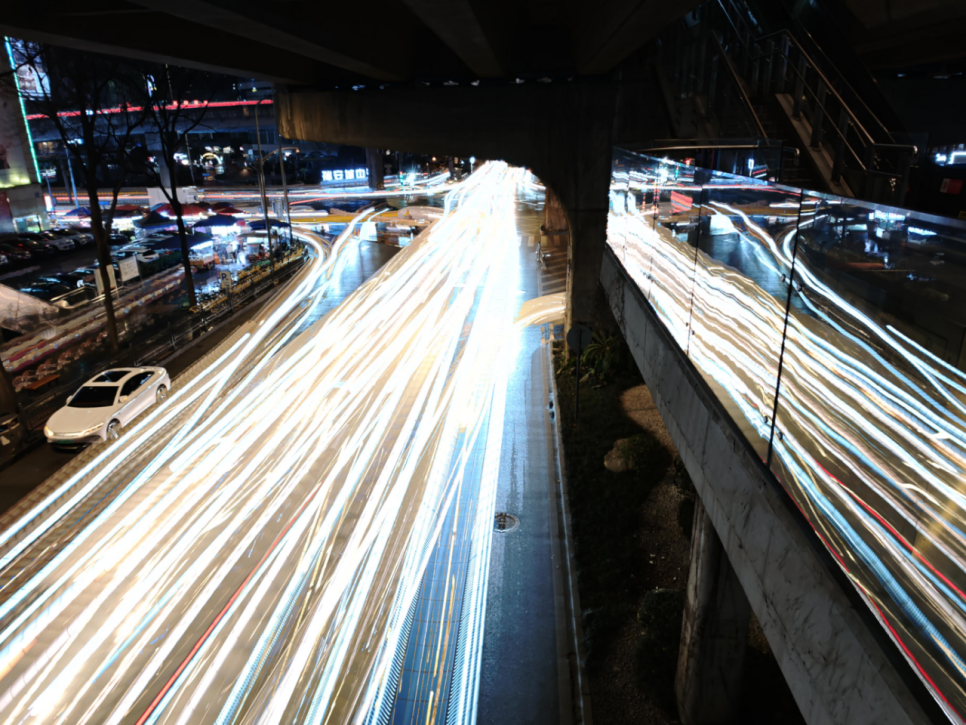 或是用长曝光拍摄出夜晚车流川流不息的光路。
