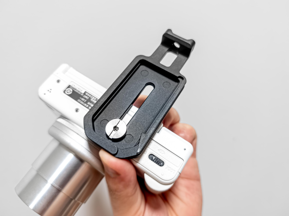 靠内侧则是一个1/4英寸螺口,你可以在此单独安装其他配件,你觉得顺手的话把三脚架装到这里也不是不可以的。