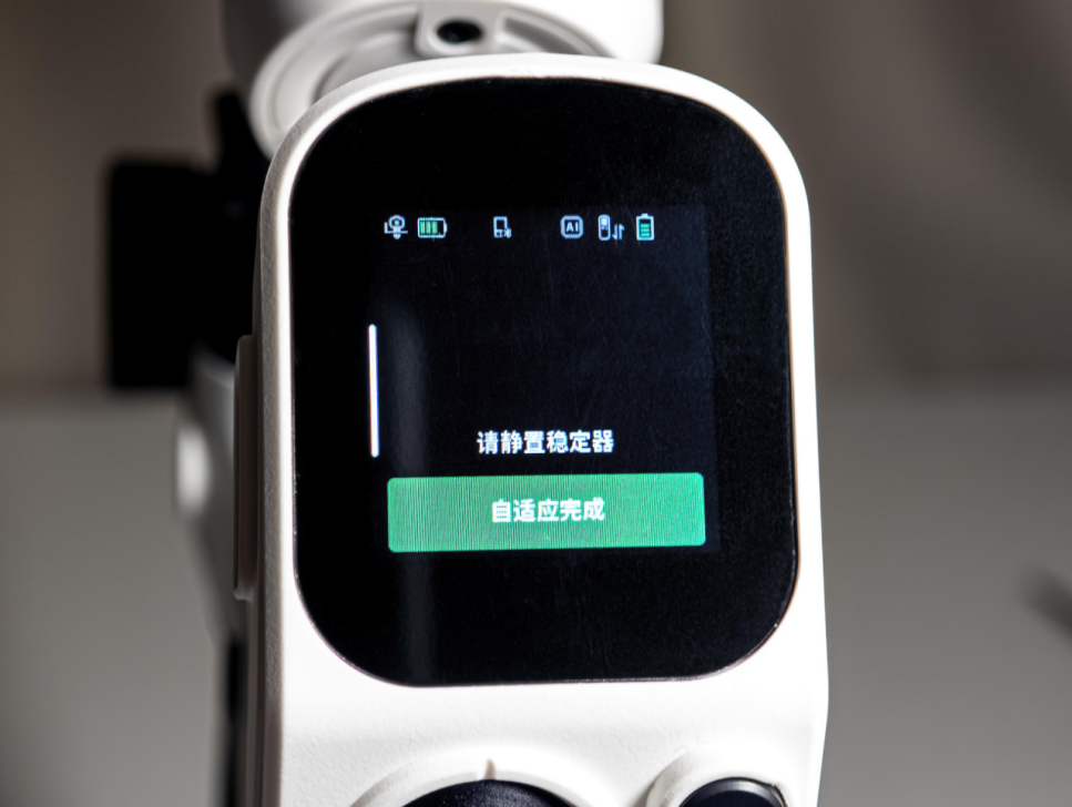 在更换了新的设备后,需要在稳定器的触摸屏或手机App中使其自适应一下电机力度,以达到更好的效果。