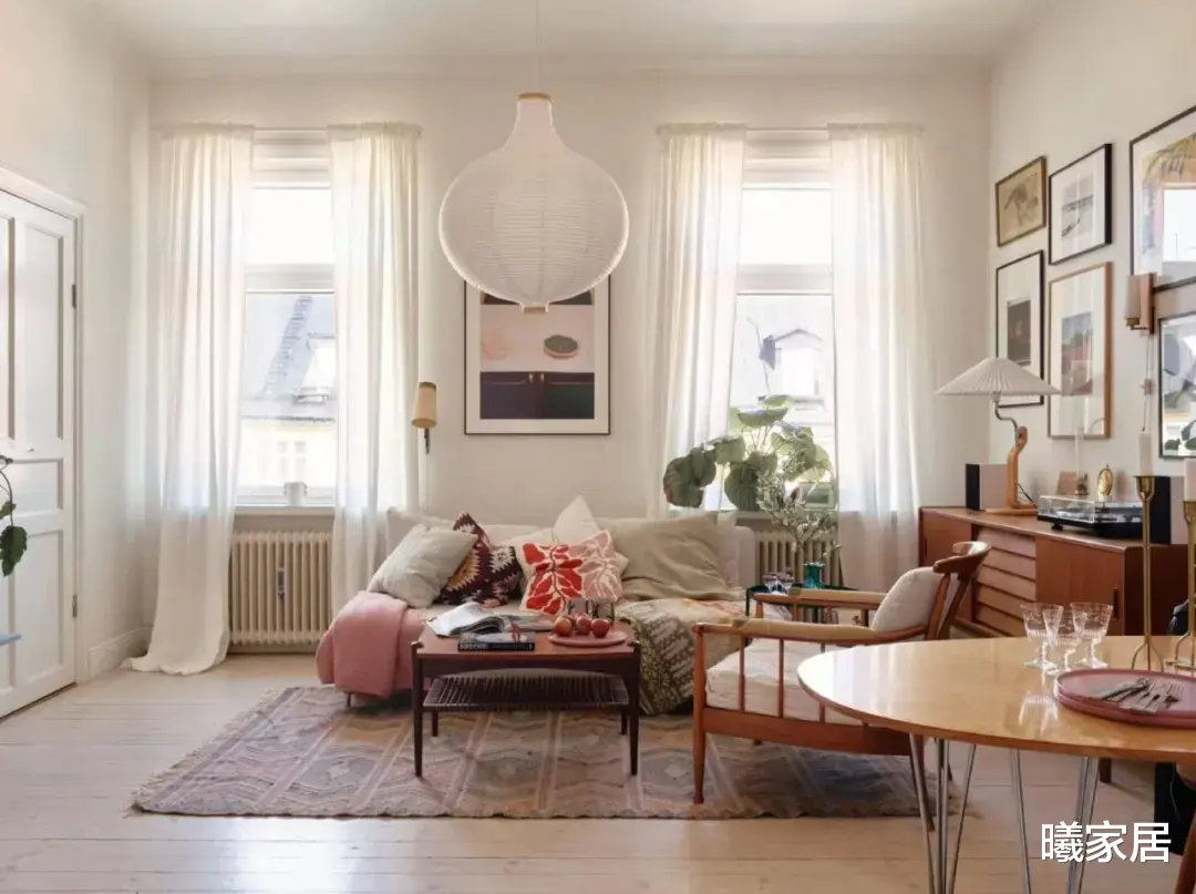 在一个瑞典女主生活的仅46㎡的斯堪的纳维亚风格的小户型公寓里,复古家具和强烈的色彩,带着精致与包容的格调,让开敞的小空间充满氛围感,让人心动。