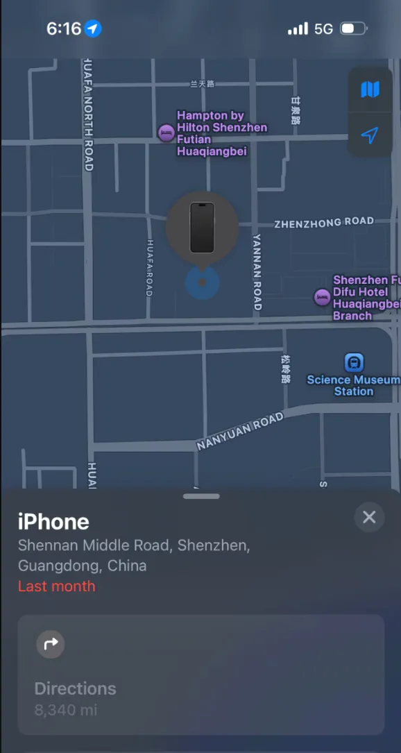 最近,一位住在美国北卡罗来纳州夏洛特的女子玛琳·布莱克在外面和朋友聊天时不幸被扒手顺手牵羊,iPhone 就这么被偷了。她马上用“查找我的 iPhone”功能锁定手机,发现它先是移动到了迈阿密,没想到接着又跨越大半个地球,出现在中国深圳市的某栋大楼里。