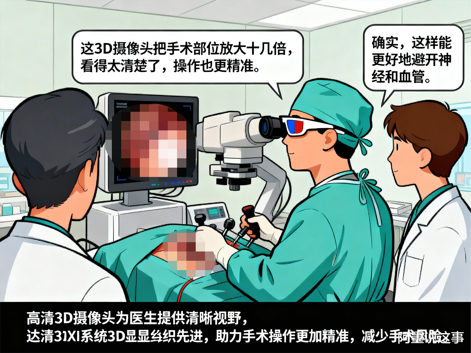 采用3D高清立体视角,能够使每一条血管都清晰可见;结合震颤过滤技术,手部抖动不再构成干扰,患者最终仅留下一处与指甲盖大小相近的疤痕。
