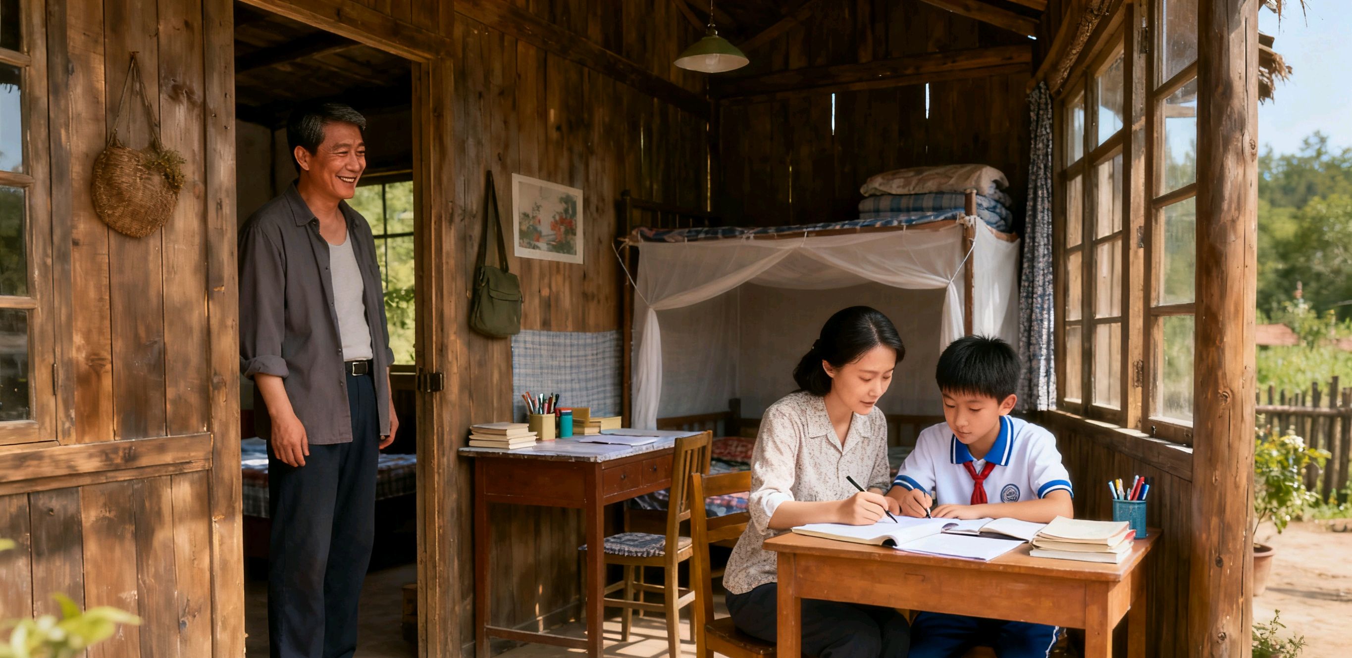 从那天起,苏晚晴就住进了我的木屋。她很勤快,每天早上起来给我和小安做早饭,然后帮我喂鱼、清理鱼塘边的杂草,晚上还会辅导小安写作业。小安一开始有点怕生,不怎么理她,可她从不生气,每天给小安买零食,陪他玩,没过多久,小安就一口一个“苏阿姨”地叫着,跟她特别亲。