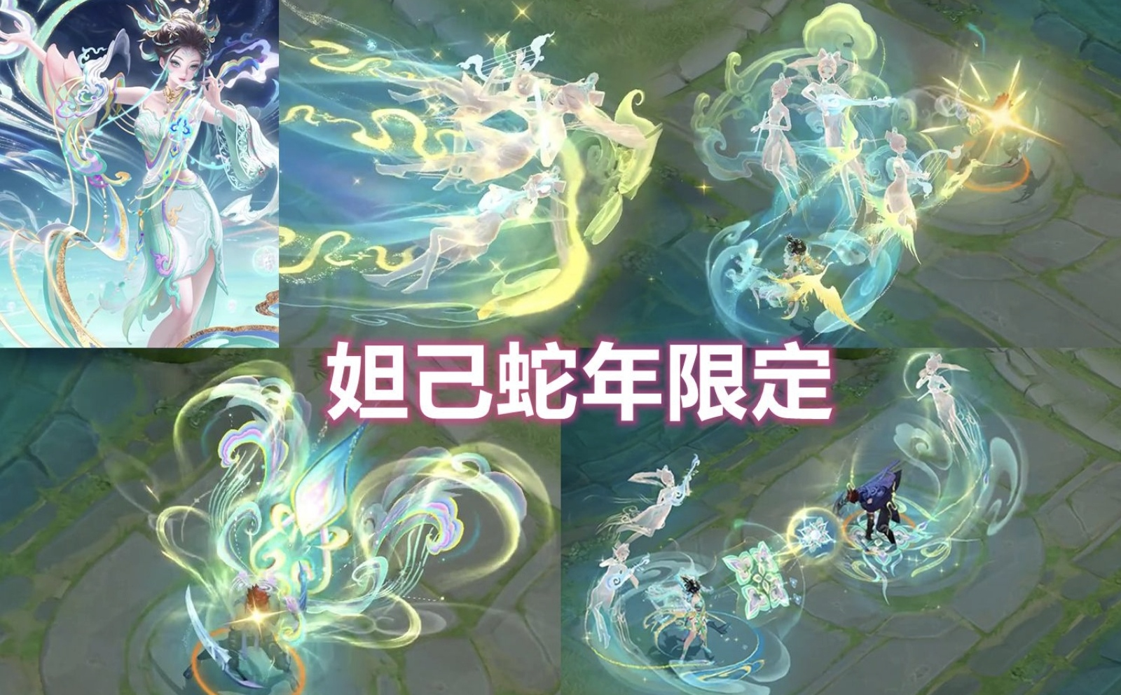 2025 年的蛇年限定妲己「愿照・众生和」,直接把特效和寓意玩明白了!妲己化身为倡导和平的应愿之神,身边环绕着翩翩起舞的仕女,举手投足间仙气飘飘。