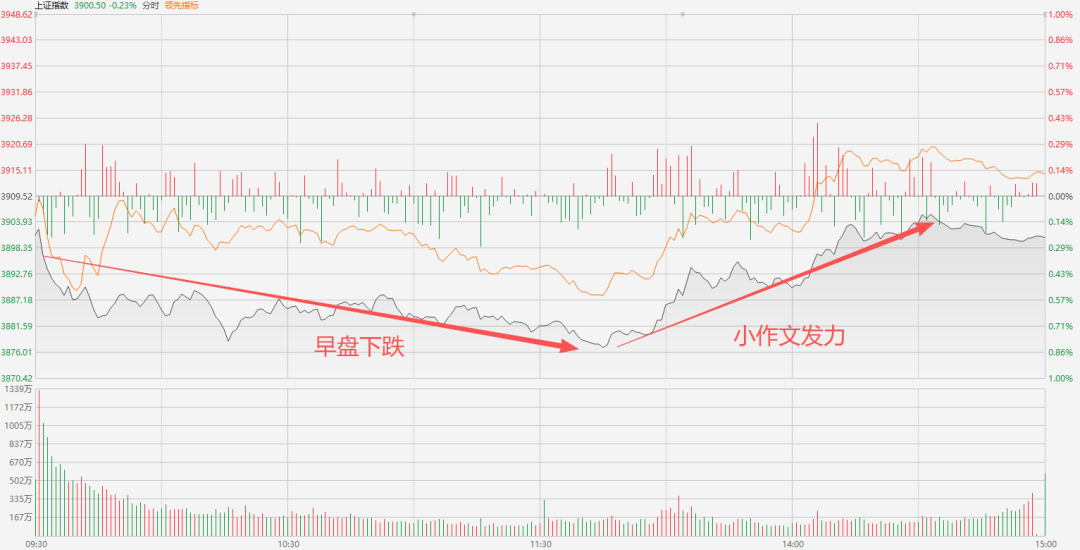 所以你看上证指数。早盘是下跌的,午后靠小作文才拉上来。