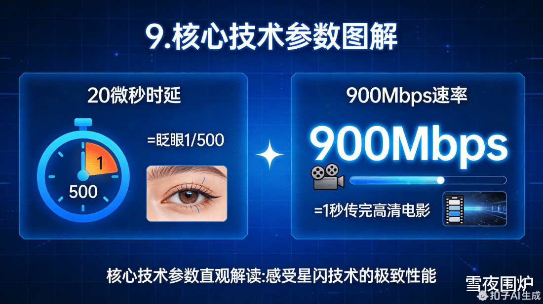 数据点睛:抗干扰提升7dB ≈ 信号穿透力翻倍;20微秒时延 ≈ 人类眨眼速度的1/500;900Mbps速率 ≈ 1秒传完一部高清电影。