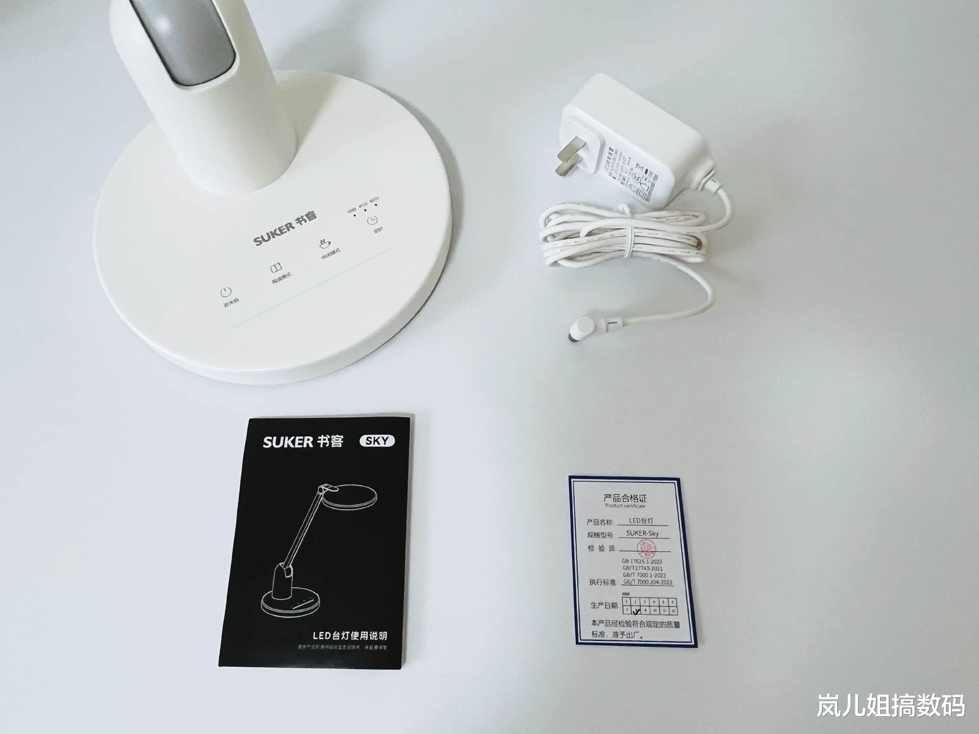 包装箱内包含了书客SKY护眼台灯主体、电源适配器、产品说明书、保修卡。