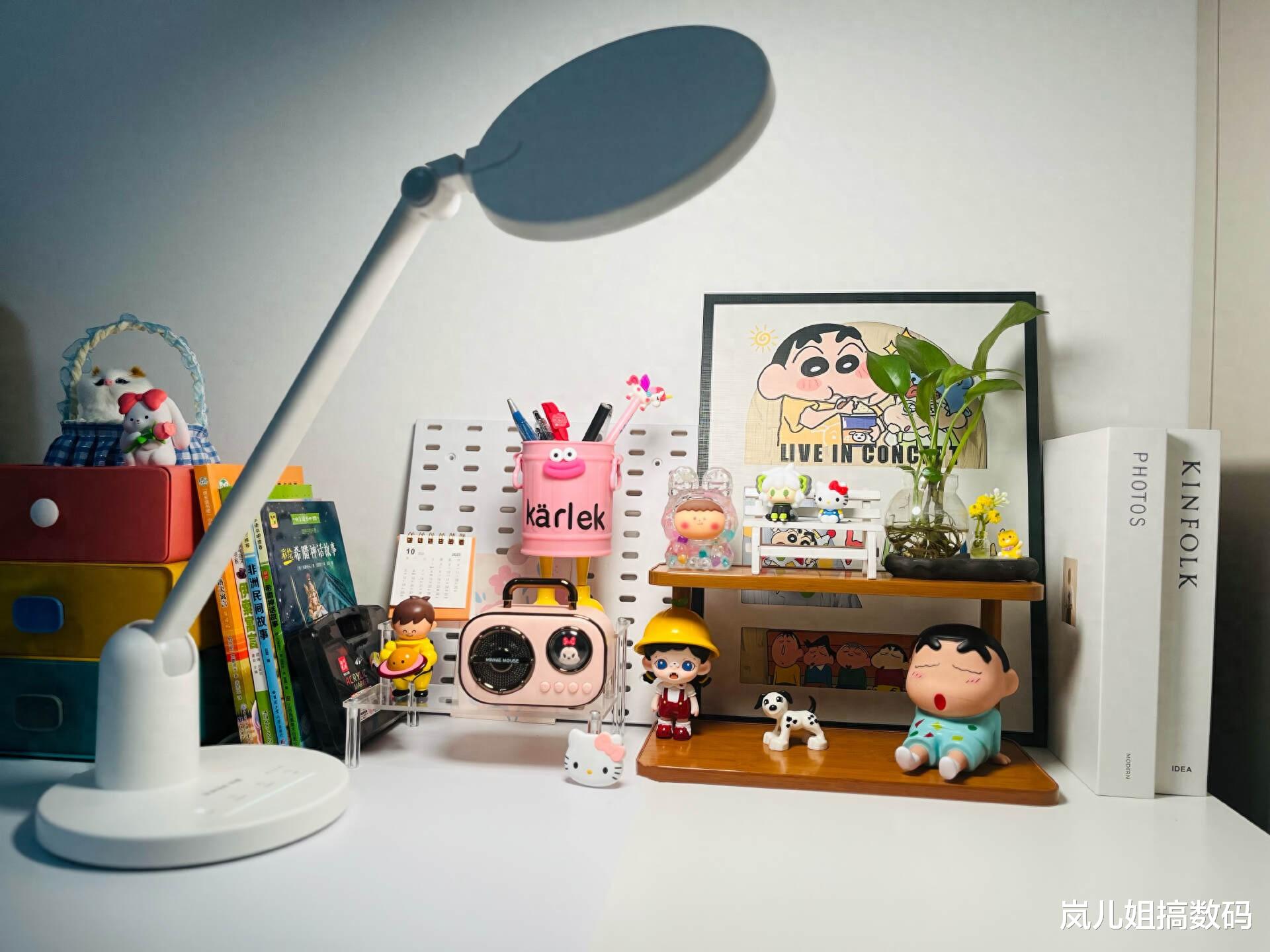 巴掌大的底座,放在书桌上也不会占用太大空间,底座设计稳稳当当,使用过程也没有头重脚轻现象,小朋友也可以轻松移动它的位置。