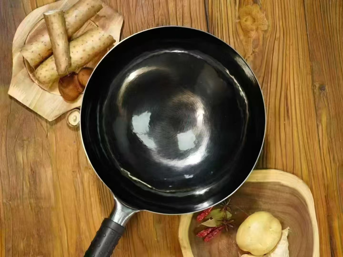 这口黑锅走进厨房,便成了烟火人间的"利器"。燃气灶开火30秒即可爆炒,青菜入锅瞬间"滋啦"作响,出锅时仍保翡翠色泽;无需润锅煎鱼,热油在锤纹间隙形成气垫,鱼皮完整脱锅,金黄焦香堪比米其林出品。更难得的是它的"成长性":新锅初用略显生涩,三个月养护后,油膜渗入肌理,煎蛋能在锅面滚成完美的琥珀色圆球。无化学涂层的设计让烹饪时释放微量铁离子,钛金属系列熬煮中药不发生反应,这份健康守护,藏着匠人对生活的体恤。