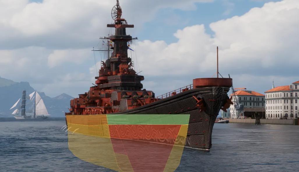 血量和装甲结构也完全一致,基础血量79000,头尾装甲32mm,甲板和上装38mm,夹层主装由32%防雷带和297~307mm装甲带组成,基础抗性相当靠谱,还继承了M系战列舰的强化大宝剑,生存底子很不错。