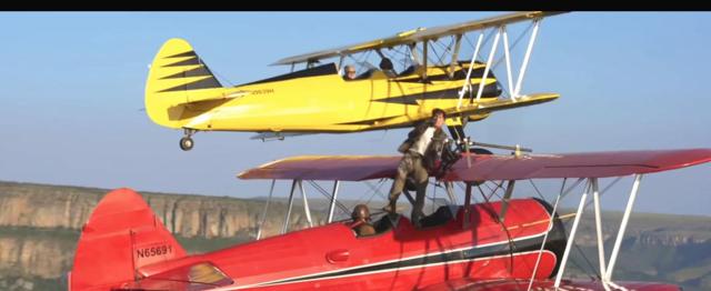 还有最后两架飞机长达20分钟的“空战”,阿汤哥还实现了空中“换”飞机的壮举。