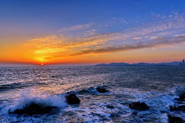 曾经的我,见过凌晨四点的北京,见过凌晨四点的上海,却记不起我有多久,没见过夕阳洒在海面上,柔柔的暮色掩映下的烟台。