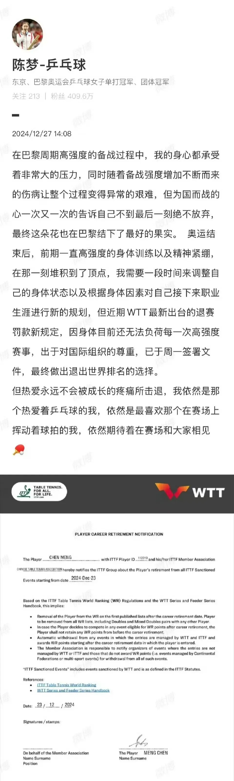 导致樊振东,陈梦先后发文宣告退出世界排名,这一事件犹如一颗石子投入平静的湖面,激起了层层涟漪。