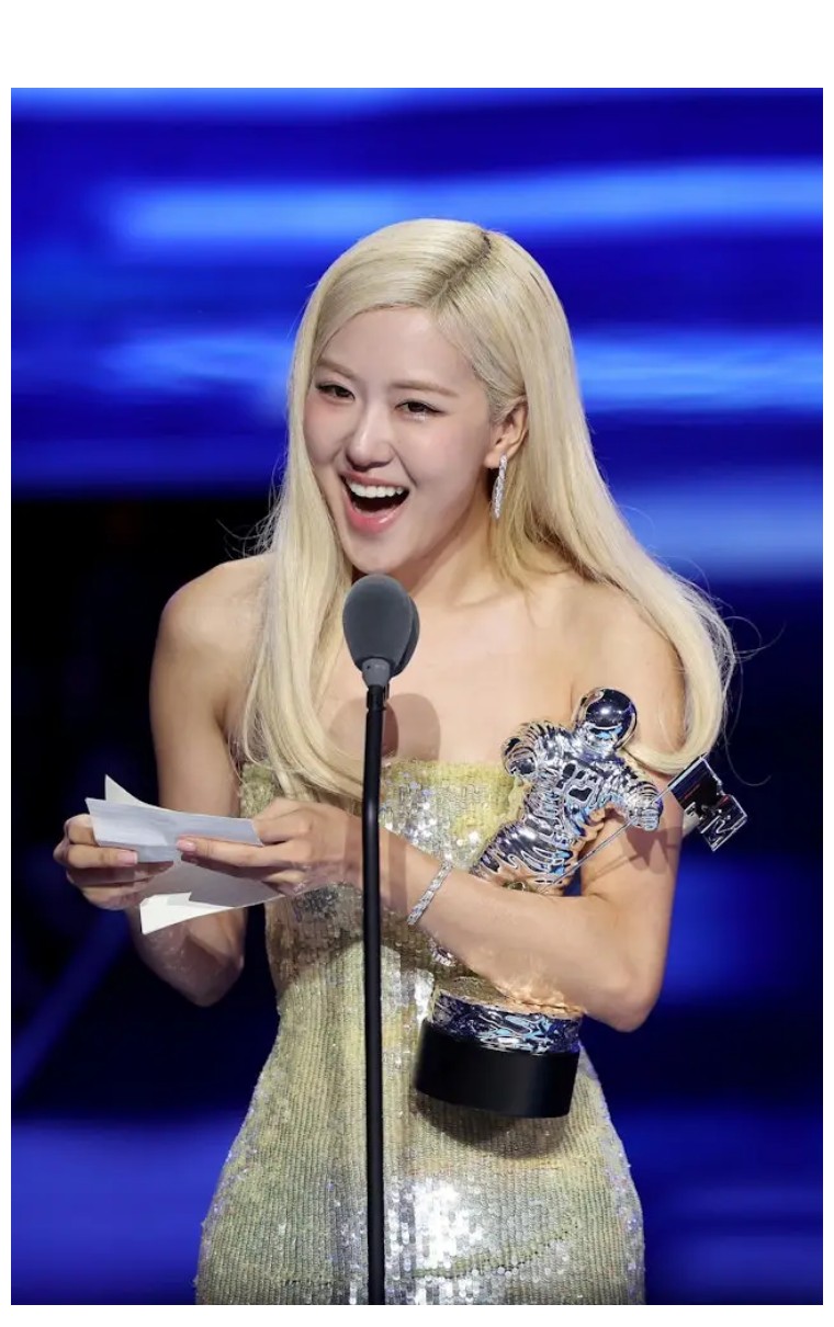 Rosé 上台时几乎激动到落泪,她掏出一份多页演讲稿,感谢了 Bruno、BLACKPINK 三位队友、粉丝,