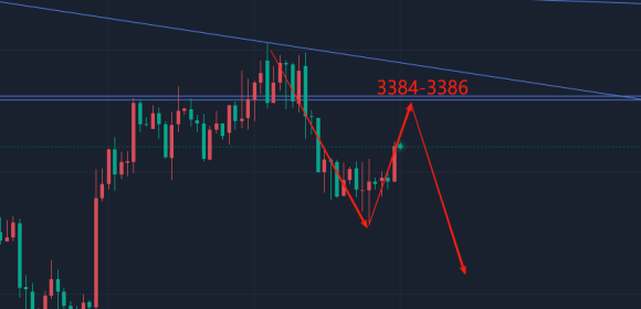 如果黄金反弹到了上方3384-3386分批短空,止损3396,目标3372-3374;(策略建议仅供参考,盈亏自负,做单严格做好风控,设置止损和目标位置,杜绝扛单)