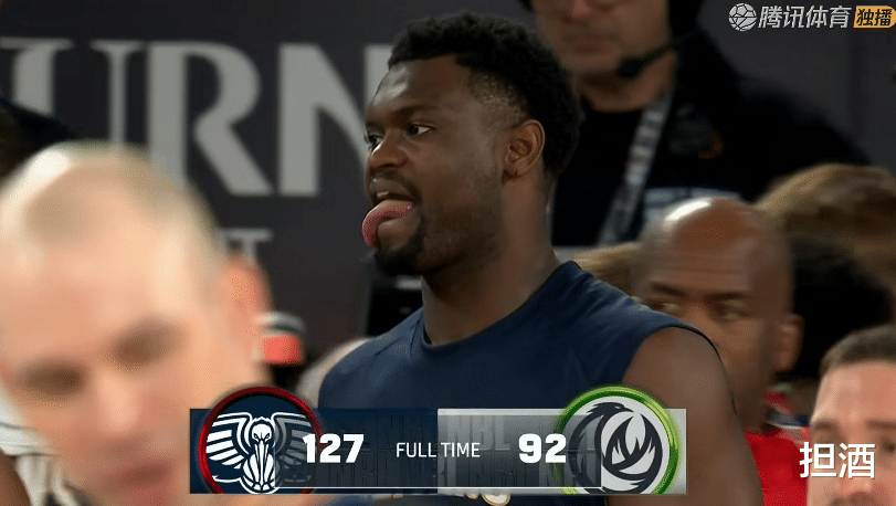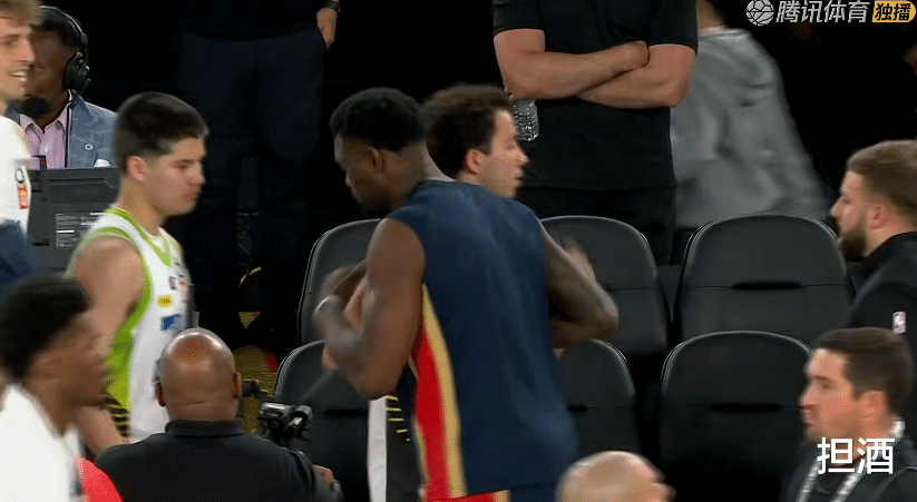 第四节开始,场上就是纯练兵了,锡安在场边看得很开心,时不时起身为队友加油助威。