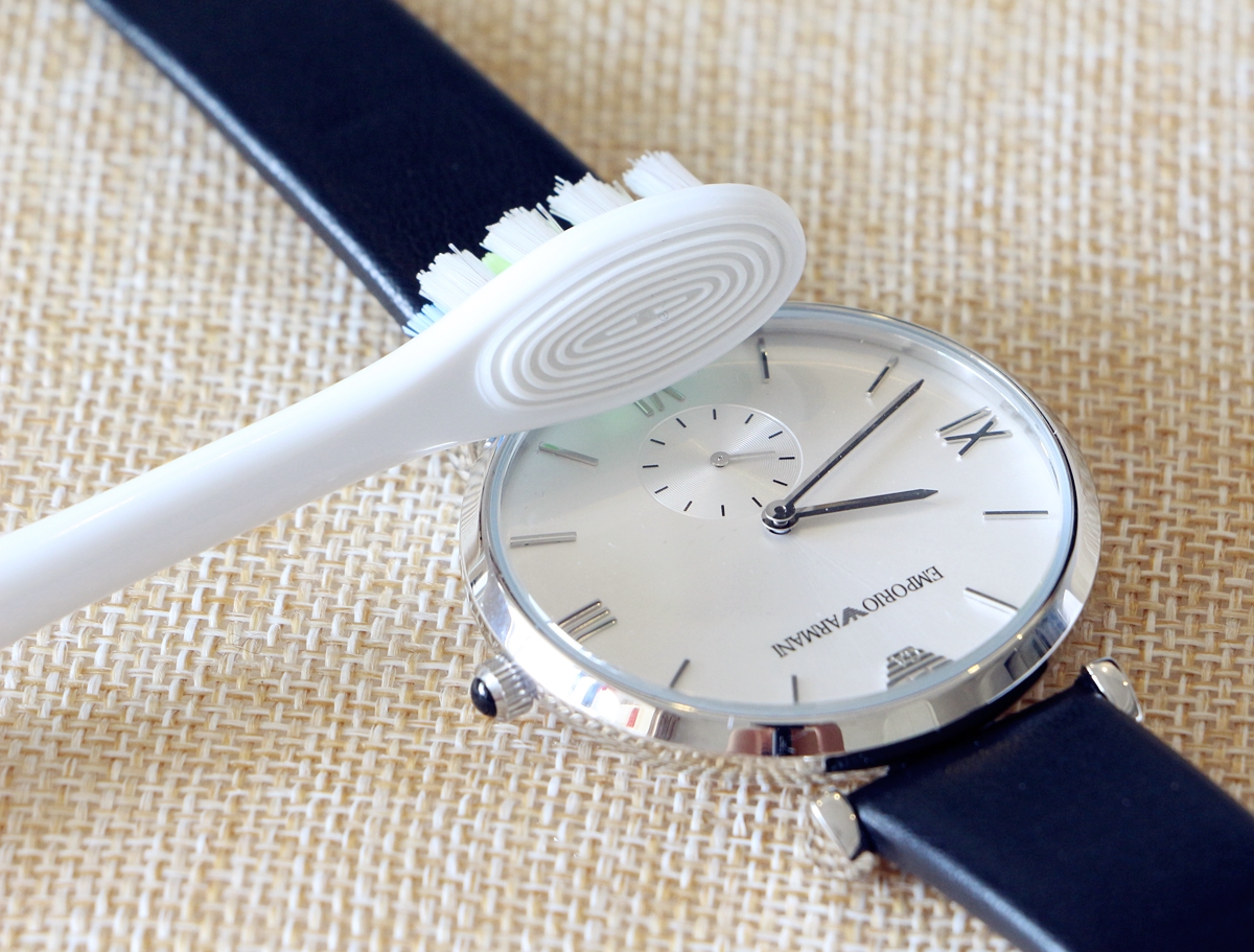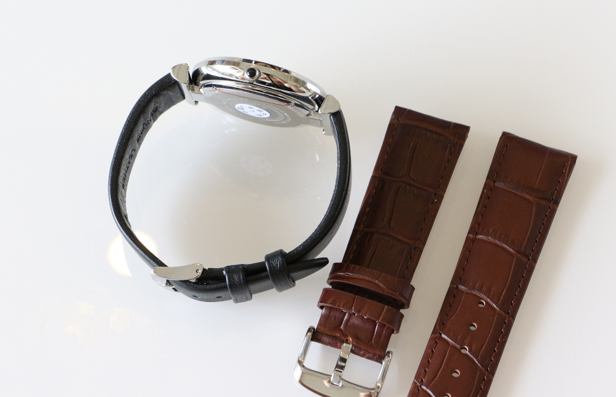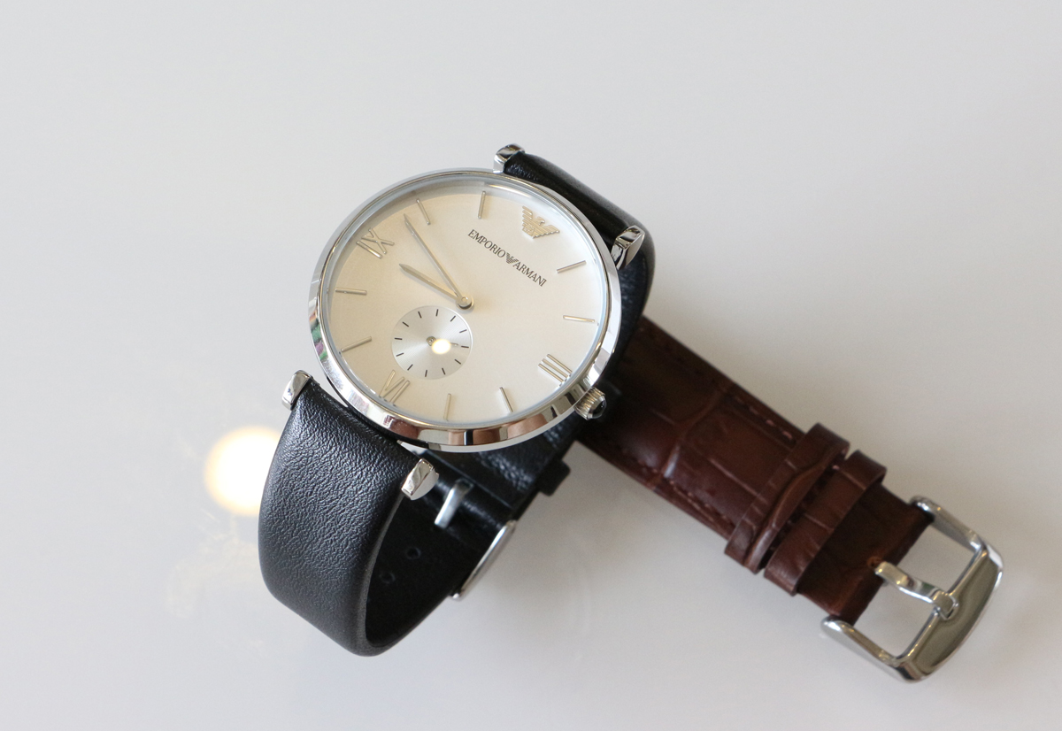 前面说到,阿玛尼还额外的附赠了棕色、咖啡色纹理表带,虽然附赠的两条表带质量没有标配的黑色皮质表带好,但是我更喜欢这种有纹理的表带。