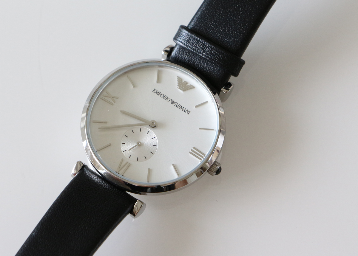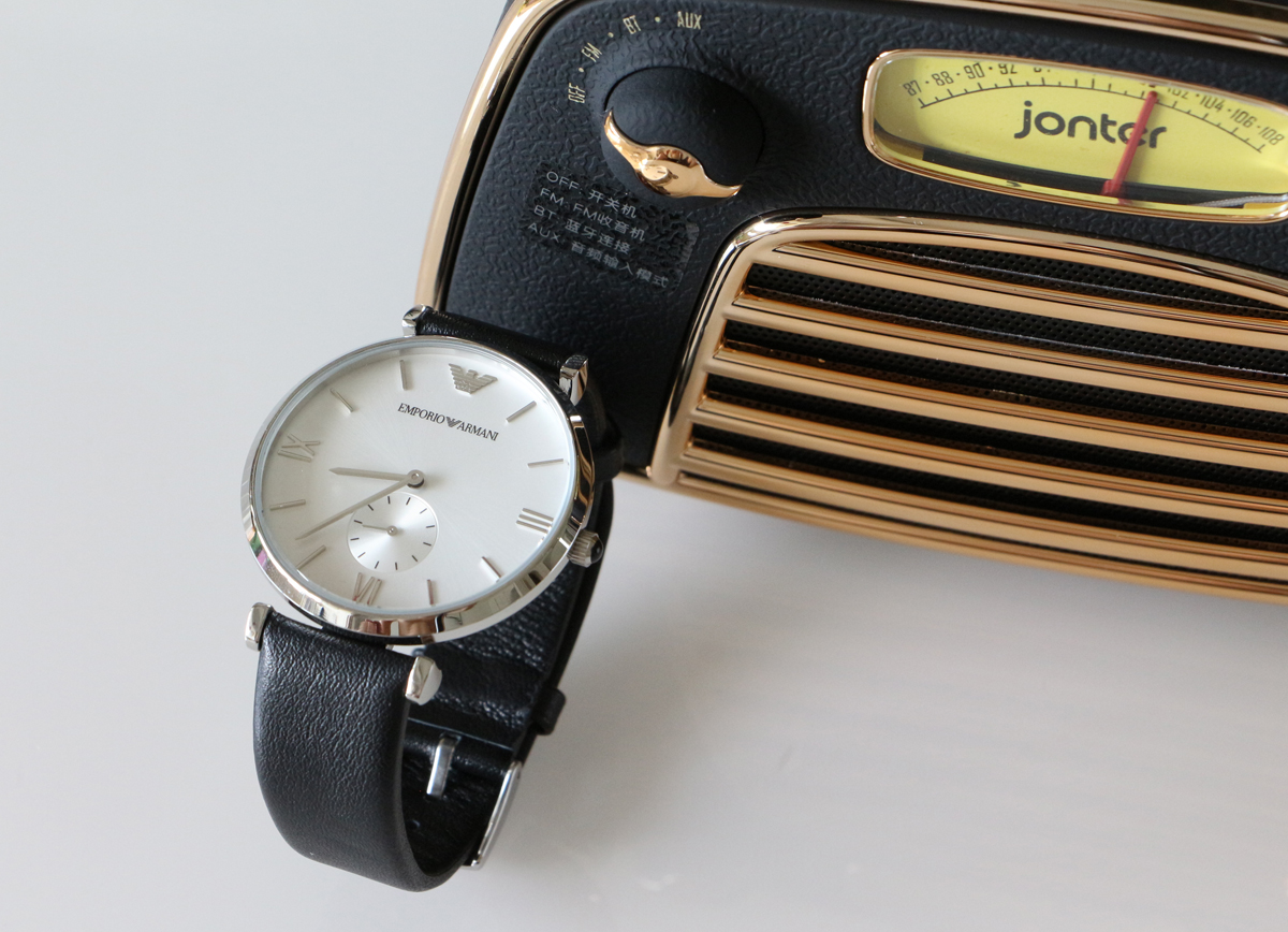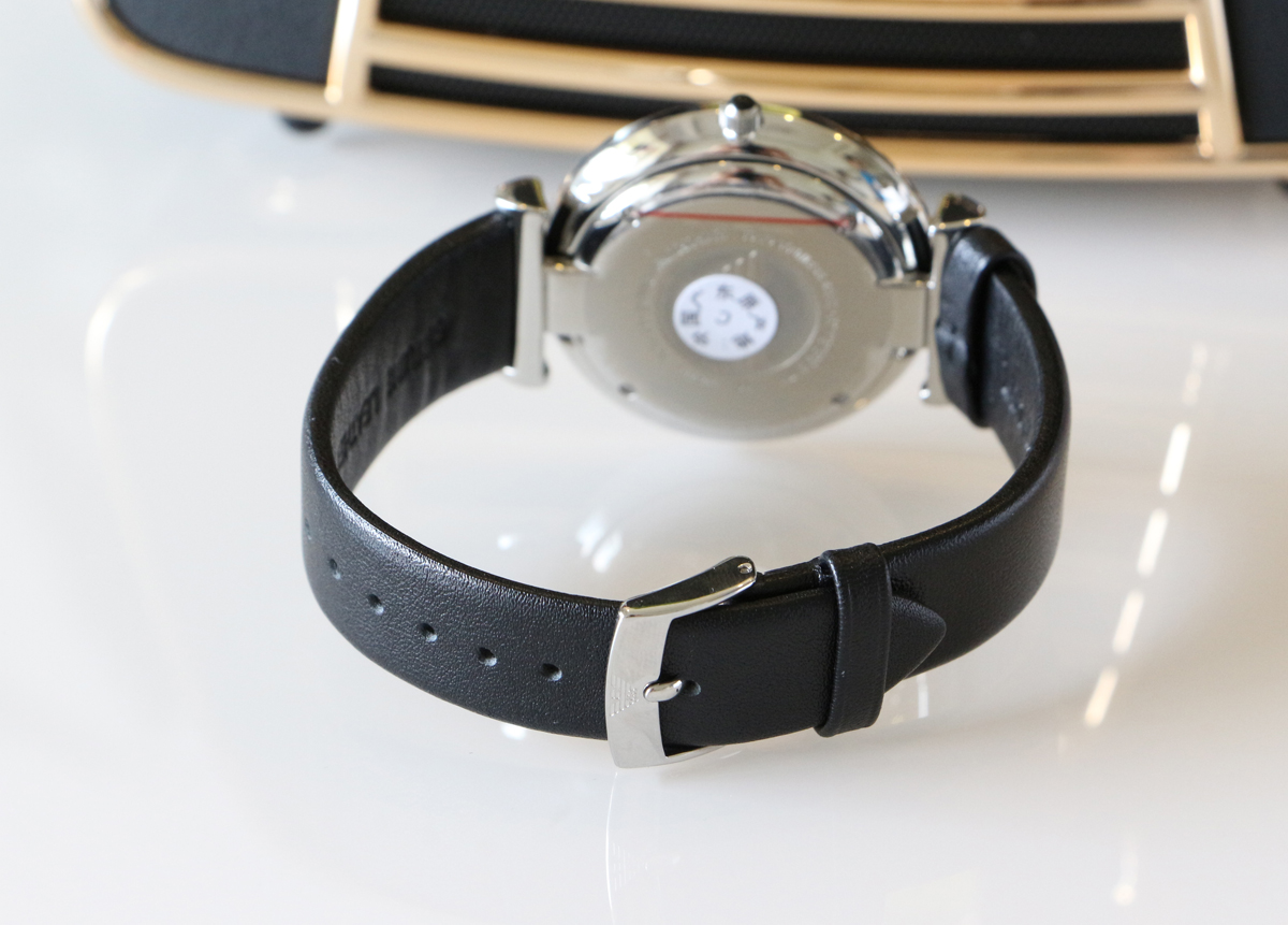 不过在体验过大直径表盘之后,阿玛尼这种洁白的表底、银色的不锈钢表盘、矿物质水晶镜面、黑色的皮质表带,会让人有种精致感。