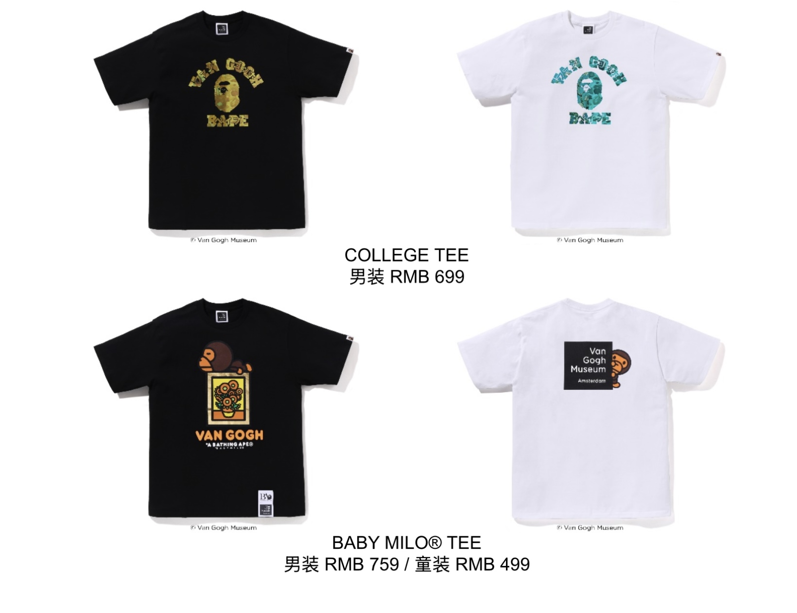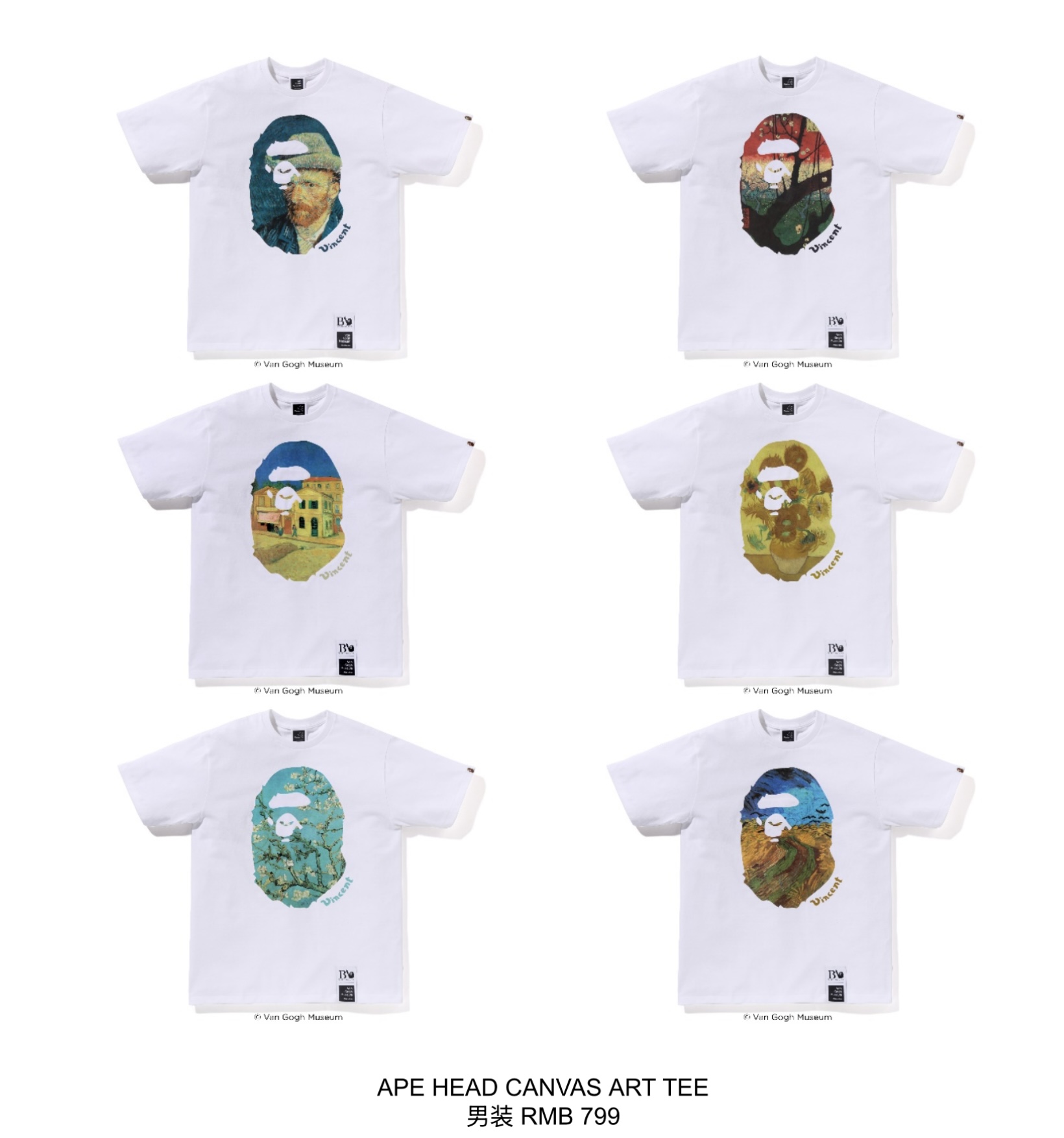 自 1993 年创立以来,BAPE®︎始终如一的引领创新设计与无畏表达,赢得了全球时尚圈的赞誉和追捧,其经久不衰的独特风格更印证了它在业界的深远影响力。梵高博物馆致力于推广文森特·梵高(1853-1890年)的艺术作品,展示其穿越时间跨度的永恒生命力。此次合作系列致敬了梵高开创性的艺术造诣和革新视野,颂扬这位传奇巨匠为绘画倾注的执着与热爱。