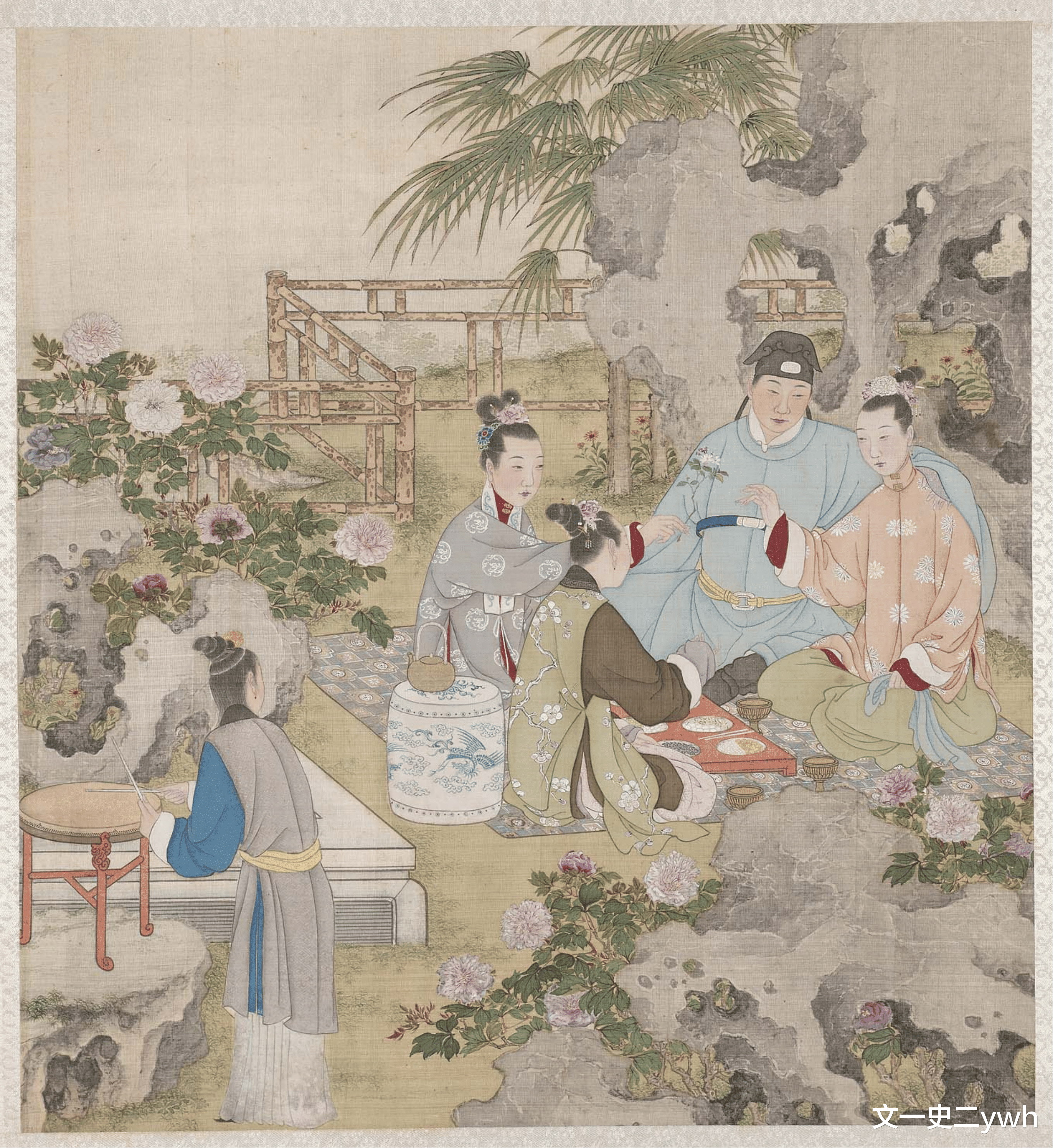 吴月娘便说是三十岁,八月十五日子时生。老婆子把灵龟一掷,灵龟转了一圈,停住了。揭起头一张卦帖儿,上面画着一个官人和一位娘子在上面坐着,旁边都是侍从,或站或立,守着一库金银财宝。