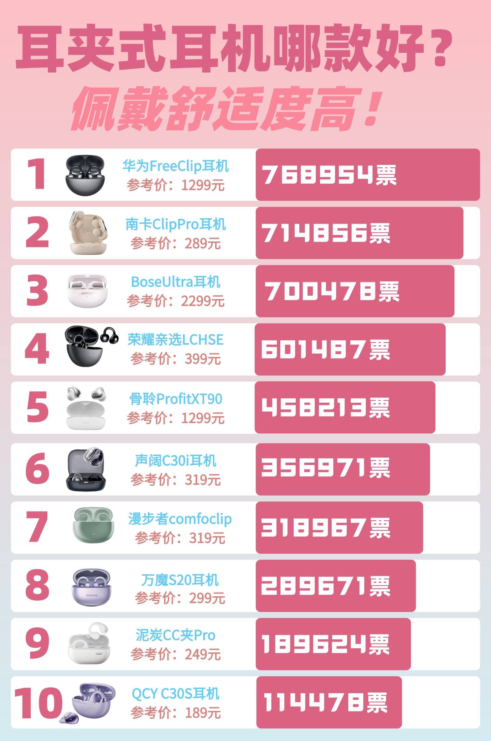 推荐理由:耳夹式半入耳耳机,稳定性不错