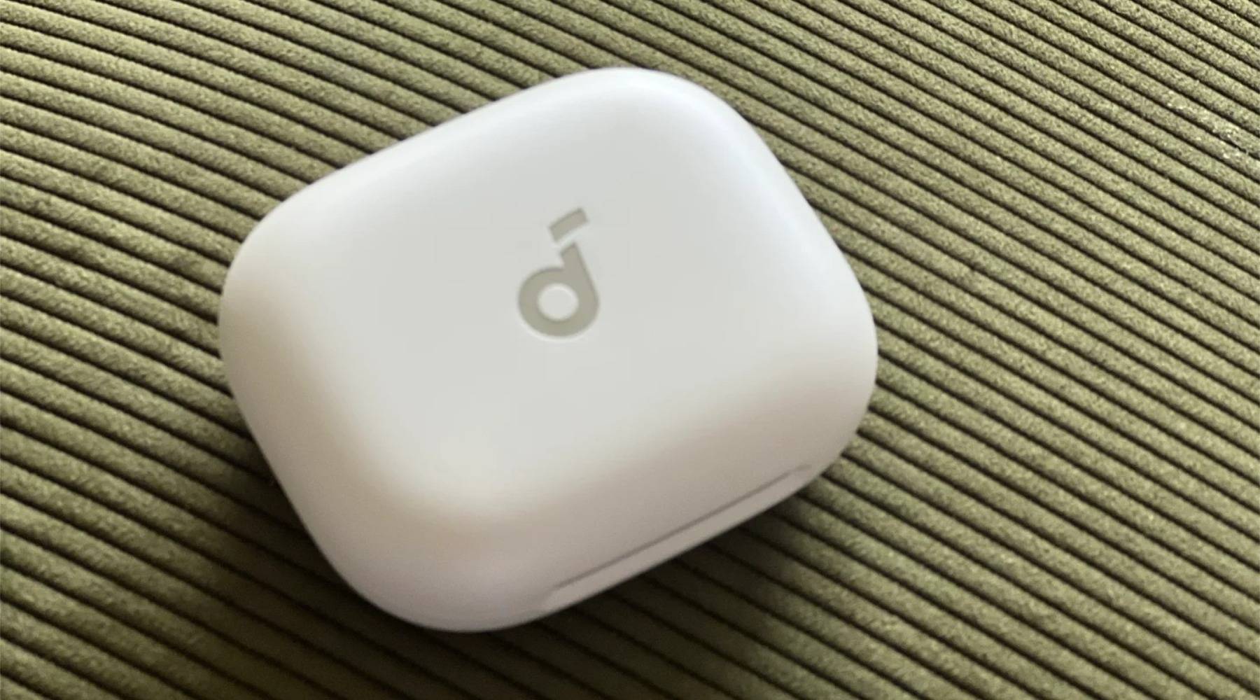 声阔AeroFit2的外壳配上自己的大logo,简单又大气,看雾面的耳机仓外壳,握在手中的手感特别好,而它的耳机本体形状采用人体工学设计,有四种挡位可以调节,可以贴合大小不同的耳朵,发声单元和支撑单元间的支臂柔软,材质亲肤,上耳无感。