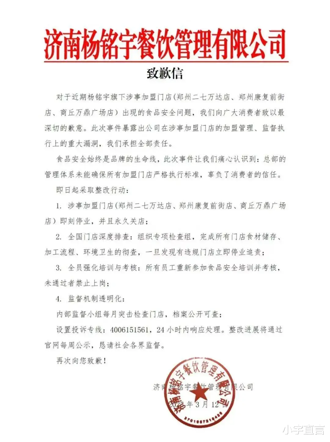 3月13日,“杨铭宇黄焖鸡米饭后厨乱象”舆情事件引发社会广泛关注。为切实维护广大消费者合法权益,国务院食安办向山东省食药安办、河南省食安办发出挂牌督办通知书,对两地核查处置工作实行挂牌督办。据新京报报道,在暗访多家杨铭宇黄焖鸡米饭加盟店时发现,存在使用存放多天的发酸食材,顾客食用后的剩菜再加工售卖,隔夜发黑的牛肉加色素后冒充新鲜牛肉等问题。不仅如此,多家门店在招聘时不需要员工提供健康证,导致大量无证店员直接上岗。