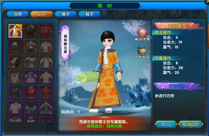 上衣: 在七侠镇声望商店,使用声望材料兑换。