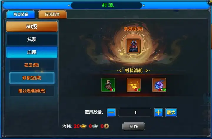 防装: 50 级防装,除了可从野外首领和地宫首领掉落外,还能收集特定材料进行打造。打造所需材料获取难度较大,需要玩家在游戏中不断探索和积累。