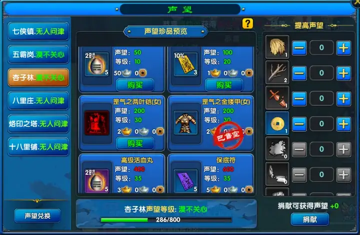 鞋子: 在八里庄声望商店兑换。罡气装备侧重于增加防御,能让角色在面对敌人攻击时更抗揍。声望材料可通过击杀小怪获得,平时刷怪时注意积累。