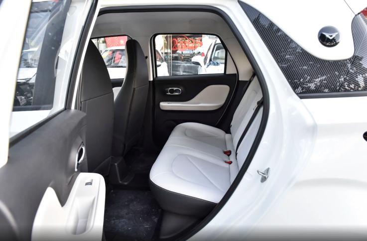 至于空间表现,整台车的长度达到3720mm,轴距2520mm,虽说是微型车定位,但轴距已然达到了小型车的水平。结合实际体验来看,车内空间不算小,座椅的填充也非常规3万级代步车那样单薄,伸手按压有轻柔的反馈,且版型对于身体的承托较好,只是侧翼支撑聊胜于无,长时间乘坐腿部缺少承托,腰部的舒适性也难以保障,属于一个主流的表现。后排空间可观,身高1米77的成年男性坐在二排可以得到2拳左右的腿部空间。