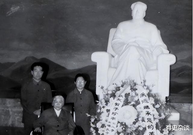 在毛主席纪念堂,贺子珍留下合照:她与毛泽东坐着,李敏立于贺子珍身后。这张照片意义非凡,记录了他们多年后再次同框的珍贵时刻。