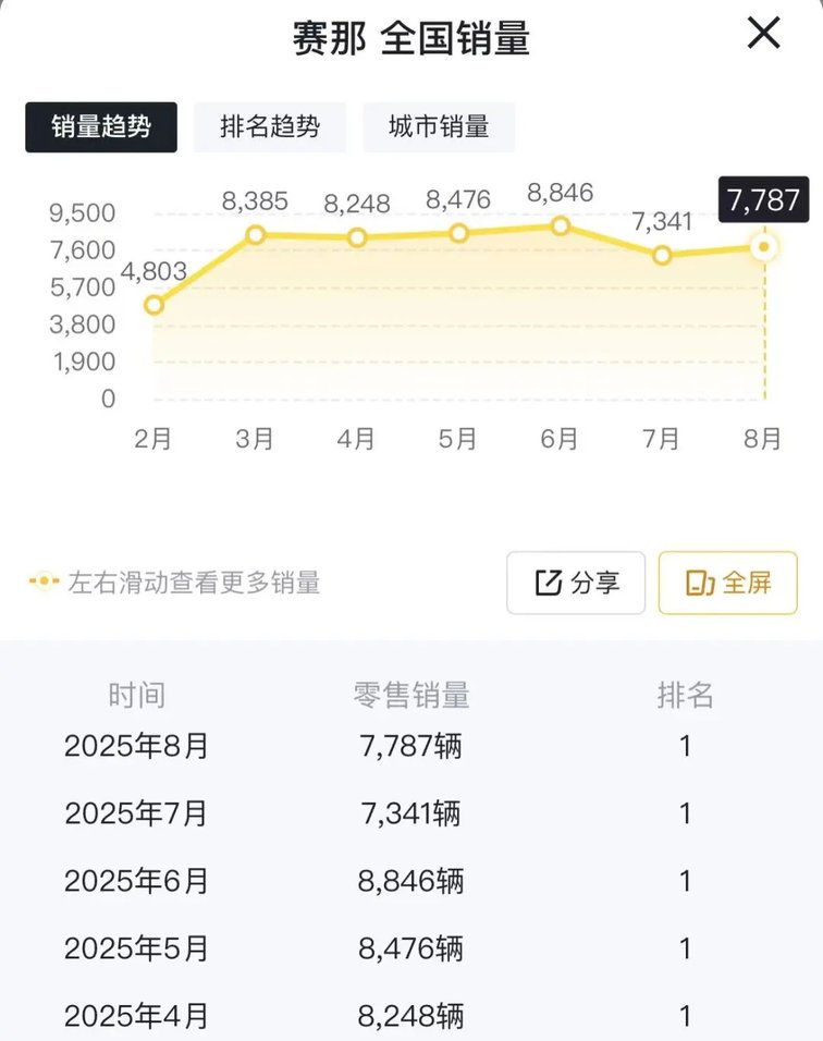 但终端零售数据的初步流露,已让这场自主与合资的较量浮出水面 —— 连续垄断 2025 年 4-8 月冠军的丰田赛那,正遭遇魏牌高山的强势挑战。
