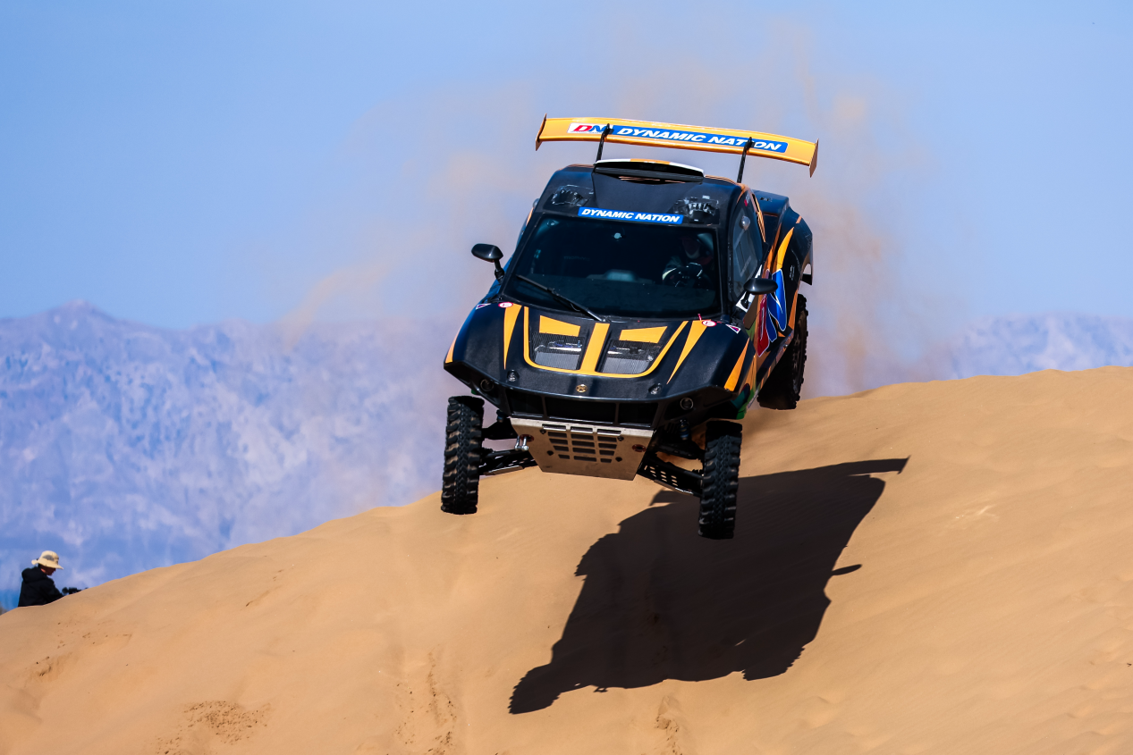 开幕式后,2025中国汽车场地越野锦标赛杭锦旗站(COC)暨NCC库布齐大越野沙漠拉力赛于金沙岭赛道进行了排位赛的圈速争夺。金沙岭赛道长度为777米(冲刺圈563米),采用顺时针行驶,最大发车数量为三台赛车。赛道地形丰富、弯道紧凑,既考验车手的节奏把握,也对赛车的稳定性与爆发力提出极高要求,是车手们一展身手的绝佳舞台。