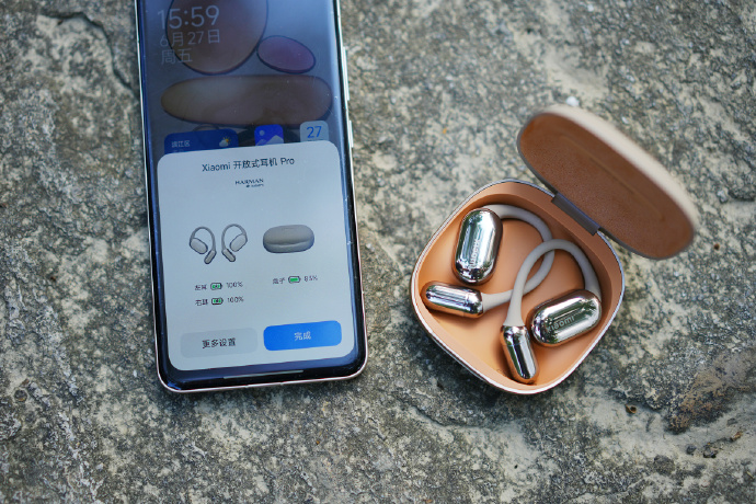 佩戴方面:小米开放式耳机Pro采用三点支撑设计,合理分配压力,挺舒服的,戴在耳朵上存在感也不是很强。不过这款耳机有佩戴不稳固的缺点,容易掉。