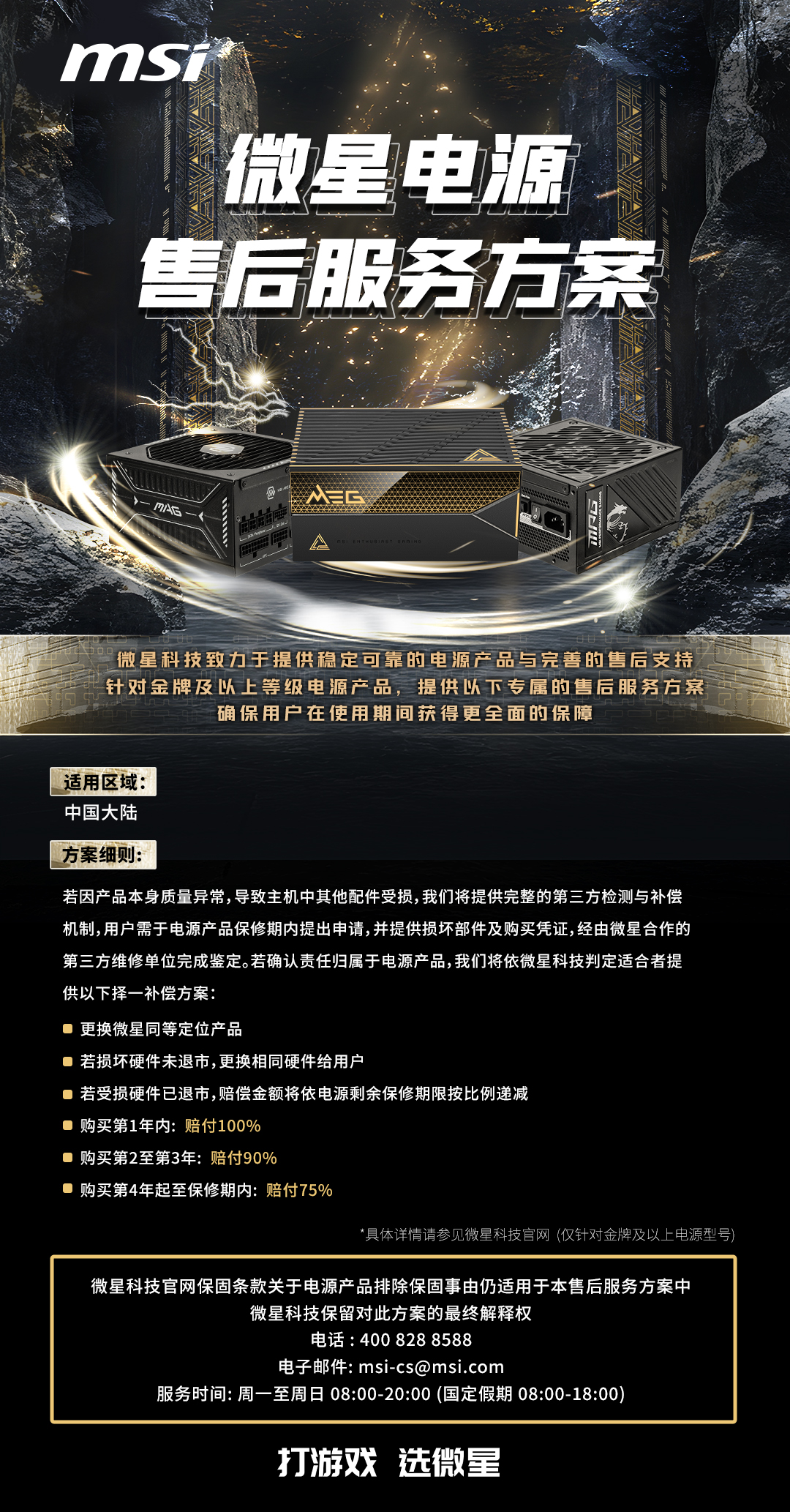 售后方面,微星电源售后政策已经全新升级,这款MAG A850GLS PCIE5电源,官方提供七年保固服务。
