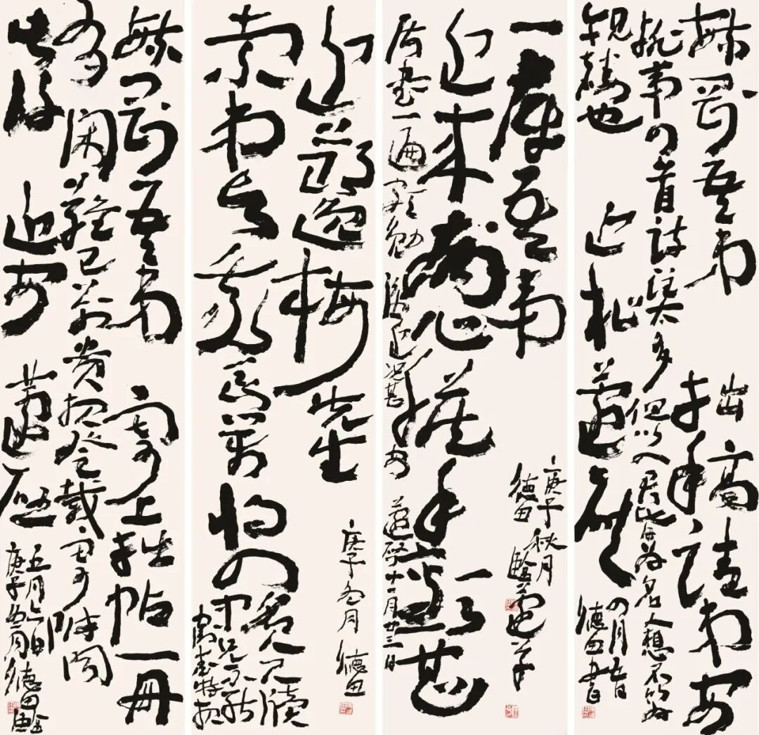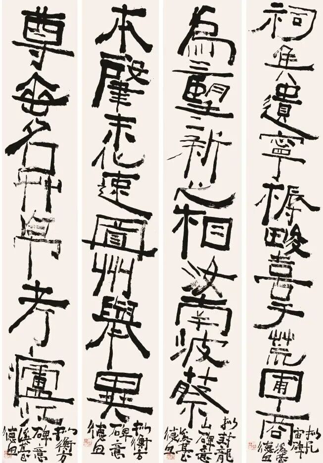 近十余年,我尤喜欢从清初迄于当代的金农、沈曾植、徐生翁、王蘧常四家的书法,朝夕观摩临习,每每激动不已、欲罢不能。四家墨迹皆以篆隶为宗,写出了自家面貌,或高古奇崛、或古朴荒率、或雄浑深邃、或博丽幽深,千姿百态,风格各异,蔚为大观。