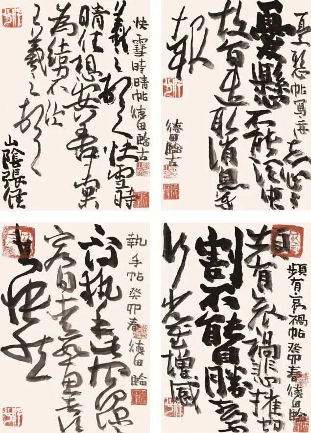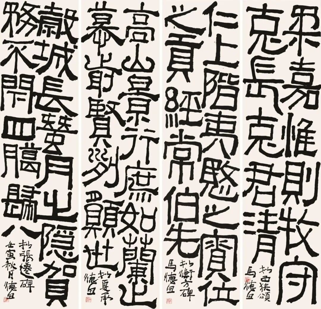 如何研习实践并从中找出有用的元素为我所用,是学书的关键,而不能停留在表面的像或不像。沈曾植的“异体同势,古今杂形”八字书理实为学书的渡人金针。势为动态,指出用笔之过程;形为静态,是为同势之结果。异体也好、古今也罢,皆为了把五体打通,这是我的认识理解。但也时常心存疑惑,便只能在临习中寻找答案。简牍书法的考古出土及印刷出版的大量资料面世,为我的学习打开了天窗。简牍书法上至战国下及两晋,跨度时间近千年,书体从古文、篆到隶楷行草五体皆有。因皆为墨迹,毛笔的书写过程一目了然。从中锋到侧锋、从粗线到细线、从方笔到圆笔、从简单到复杂都有清晰的踪迹可循,近千年的简牍书法史是一部浓缩的文字史、书法史、技法演进史。沈曾植见到简牍就认为“简牍为行草之宗”,郑孝胥看后也感慨“自流沙坠简出书法之密尽泄”,李瑞清更道“章草久已失传,余近观流沙坠简欲以汉人笔法为此体中兴也”。古人见到简牍后发出如获珍宝般惊叹的非常之多,并在获得简牍后纷纷临习,付诸于实践。沈曾植、王蘧常师徒俩当为其中的杰出代表,他们以自己的实践作品为后人学习简牍作出了楷模。可惜这种书学思想与实践在当代书法界并未引起足够重视,有人甚至认为沈曾植的书法有夹生饭之嫌。这种偏颇的思维方式是当下书法学习与创作较为常见的现象,难免令人担忧。为什么会出现这种局面——也让我们警醒与反思。那么更重要的是要不断去实践,去试错。我这本以简牍书法的方式临习金农、沈曾植、徐生翁、王蘧常四家的作品就是这一想法下的具体实践,可能会问题很多,想法也不一定正确,但却是我真实的理解与状态。临习的作品更侧重对技术的研究与表现,或许有形而下之憾,可是各个时代的观念不同,技法也是不同的。一种风格走到尽头,又会诞生另一种风格。一种风格就是一种发展,风格的历史永无尽头,但这始终是需要技法来支撑的,临习的四家中徐生翁就是最好的例子。可惜我能力有限,仅能得其皮毛耳!熊十力先生说“学问方法,必待学成而后能明其所以。一旦豁然,回思经历方自见有其所循之方法可举以告人者。”我还未豁然更不敢举以告人,只能呈现我对传统粗浅的理解和真诚的态度。在此不再过多阐释。恳请方家同道多多批评指教,此小文聊为自序。马德田2023年11月6日
