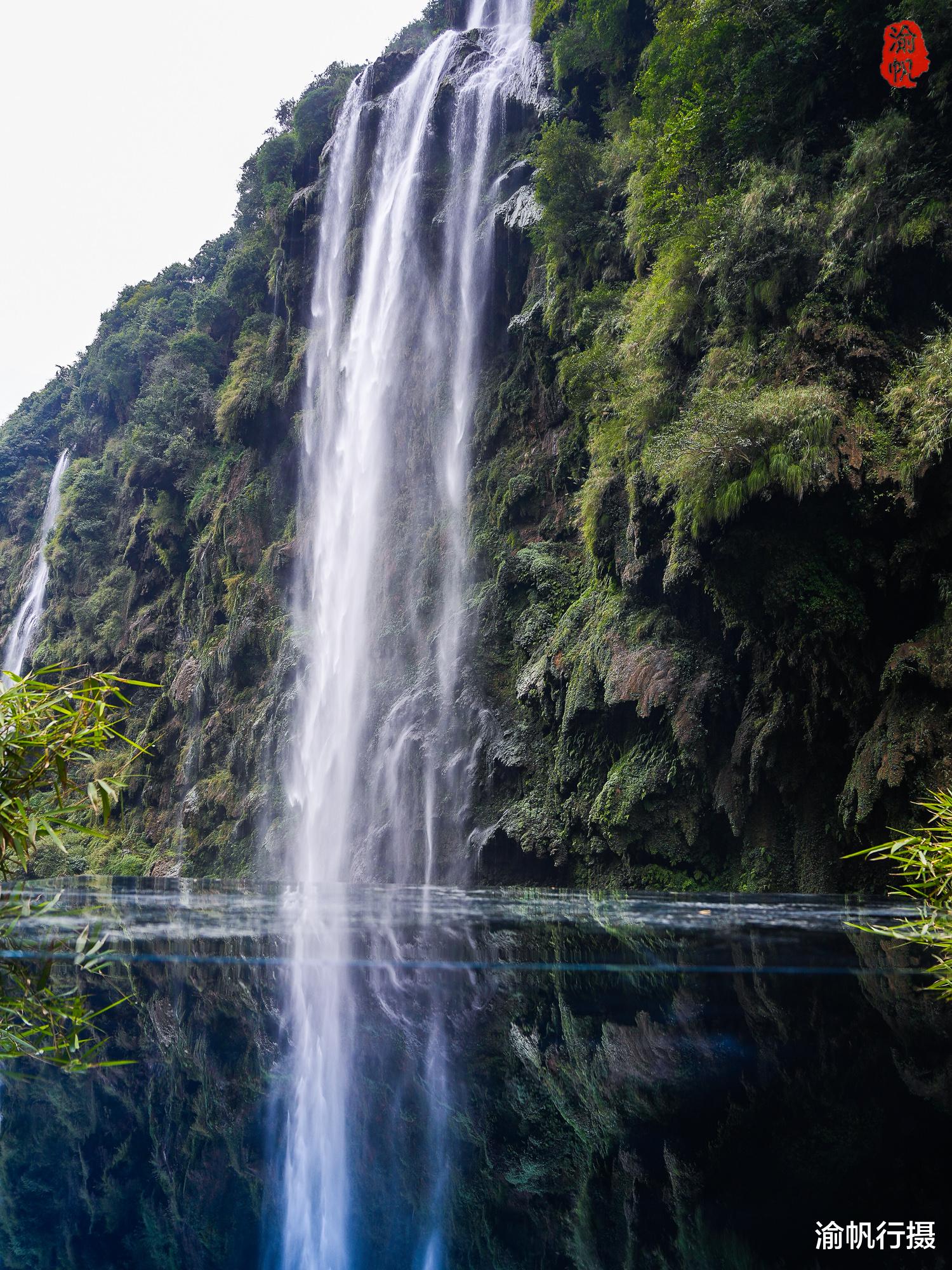 走进马岭河峡谷,首先映入眼帘的是那层层叠叠的瀑布群。夏天来的时候正值雨季,数十条瀑布从高处倾泻而下,如同银河缺口,极为壮观。这次故地重游,虽然水量少了很多,瀑布也细了不少,但马岭河的水却更绿了,如同镶嵌在峡谷中的碧玉一般。