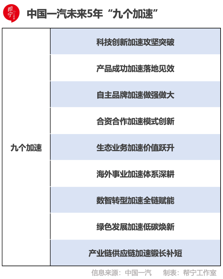 从“六维定义”到“九个加速”再到“五个闭环”,并非简单的策略叠加,而是中国一汽攻防一体的转型组合拳。