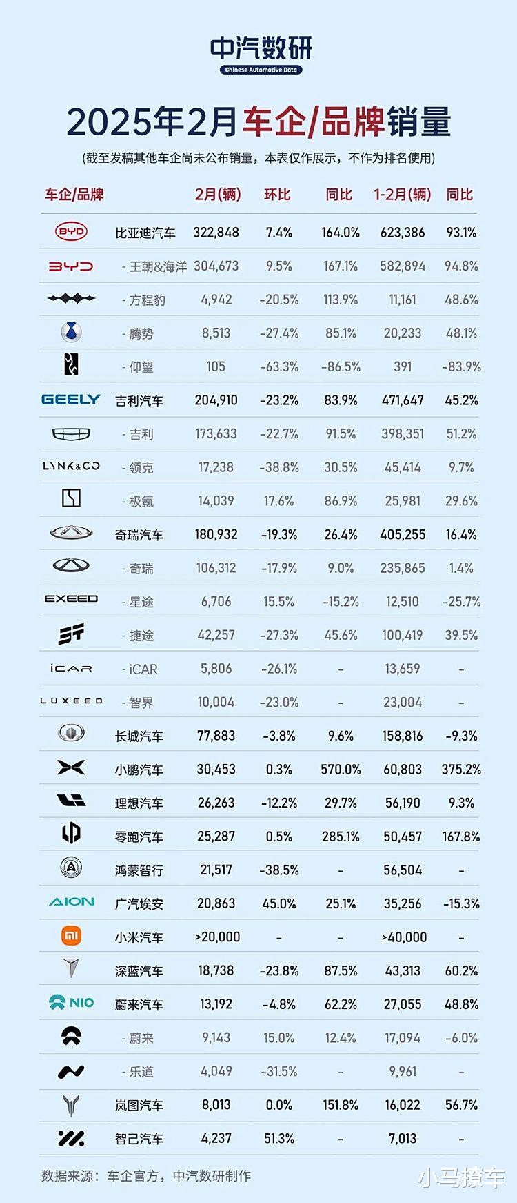 【小马撩车讯】在2 月车市的成绩单上,比亚迪无疑是最耀眼的明星。即使处于传统销售淡季,还叠加春节假期,比亚迪却交出了一份堪称惊艳的答卷 —— 销量超 32 万辆,持续销量神话,继续稳坐中国市场销冠宝座,淡季卖出旺季销量,这份成绩的含金量十足。