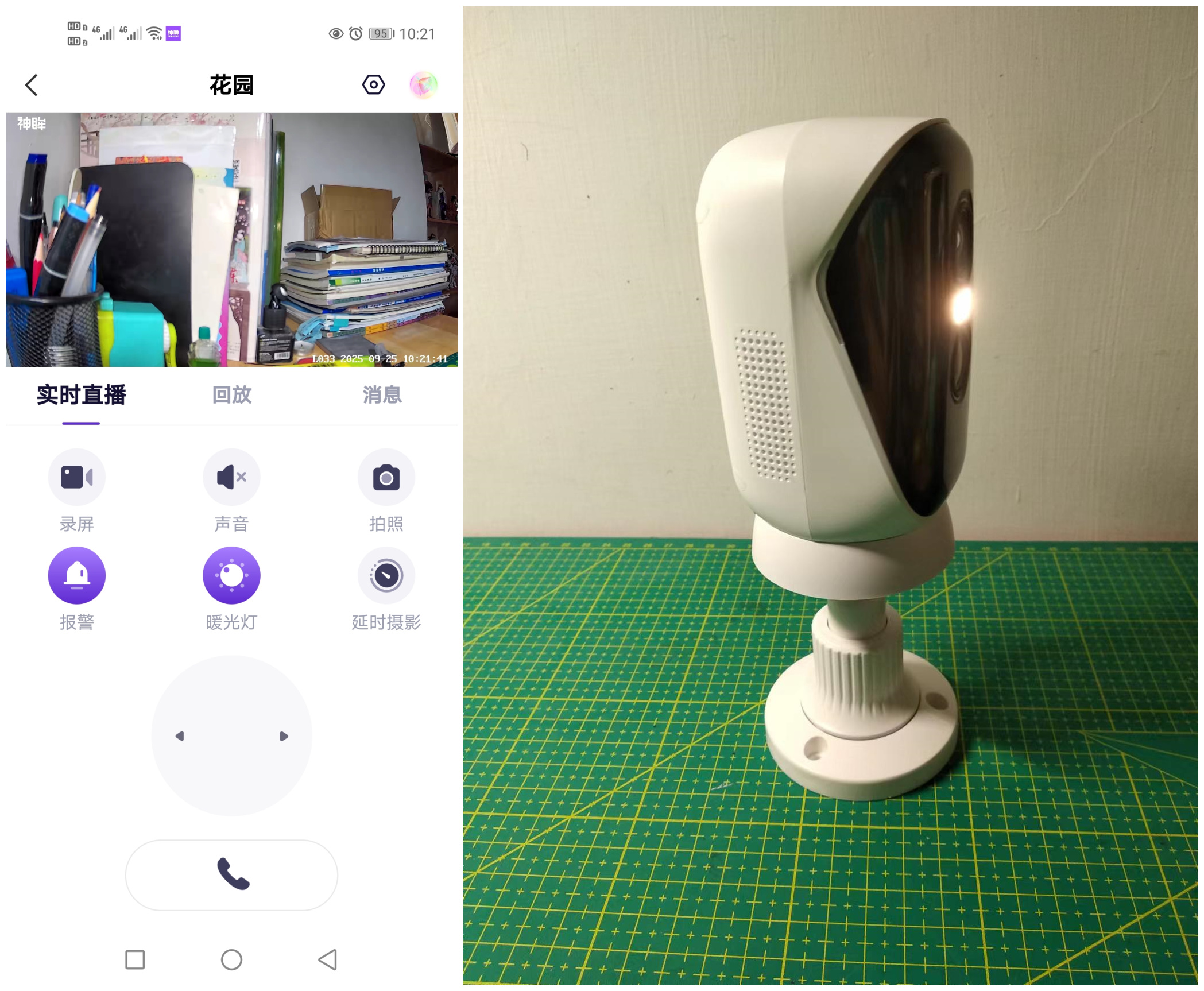 上周三开着会,手机突然跳 “检测到人形”,点开见老太太炒完菜擦灶台,利用双目摄像头的变焦功能清楚的发现炉灶火还没关!我赶紧在 APP 里喊 “妈,火没关!”,她立马听见去关火 —— 有了这语音通话提醒,上班都踏实多了。
