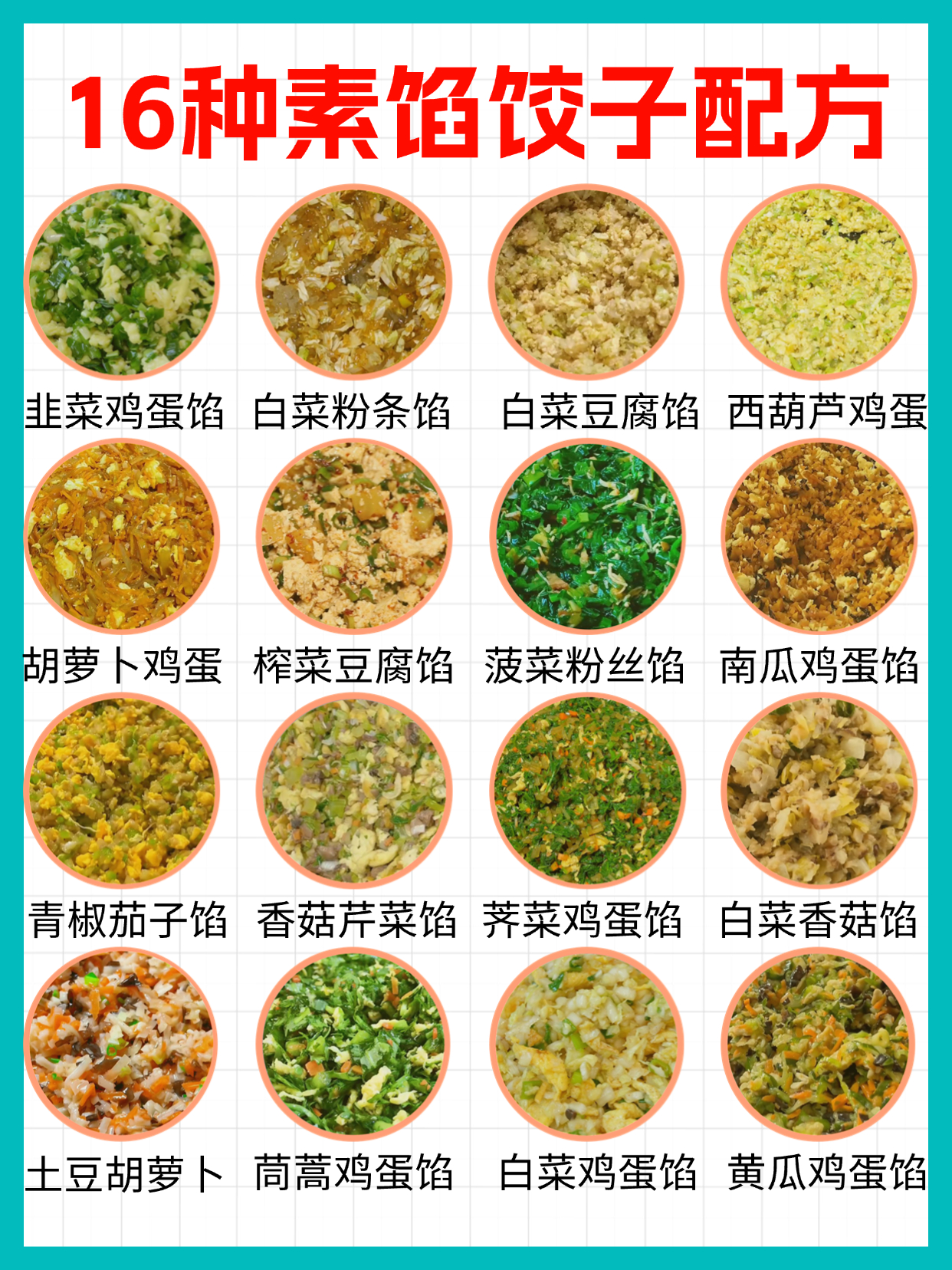 想吃素馅饺子,却不知道包啥,这里有16种素馅搭配,下次再不知道吃啥的时候,就来看看。