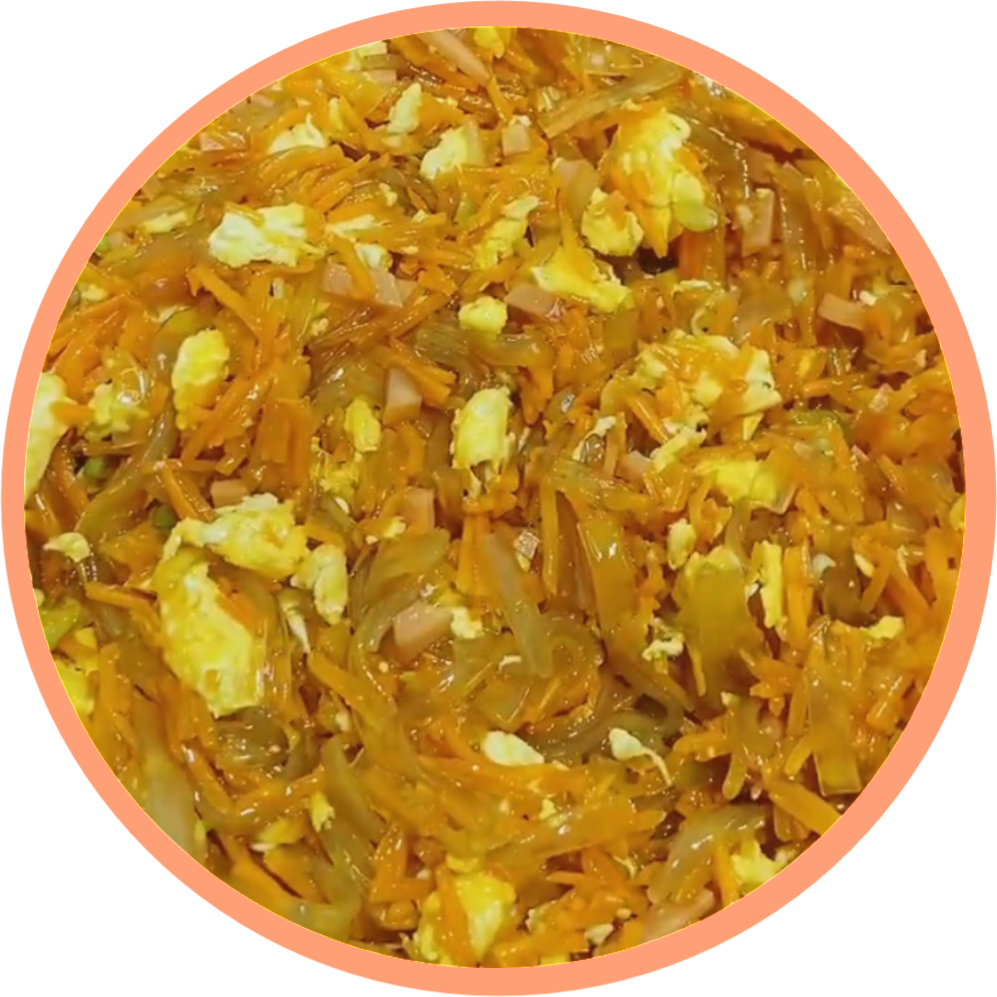 粉条温水泡软后切小段,胡萝卜剁碎后煸炒1分钟,晾凉备用,鸡蛋打散炒成碎块,接着把三样混在一起,加入盐、生抽、香油、五香粉,拌匀即可。